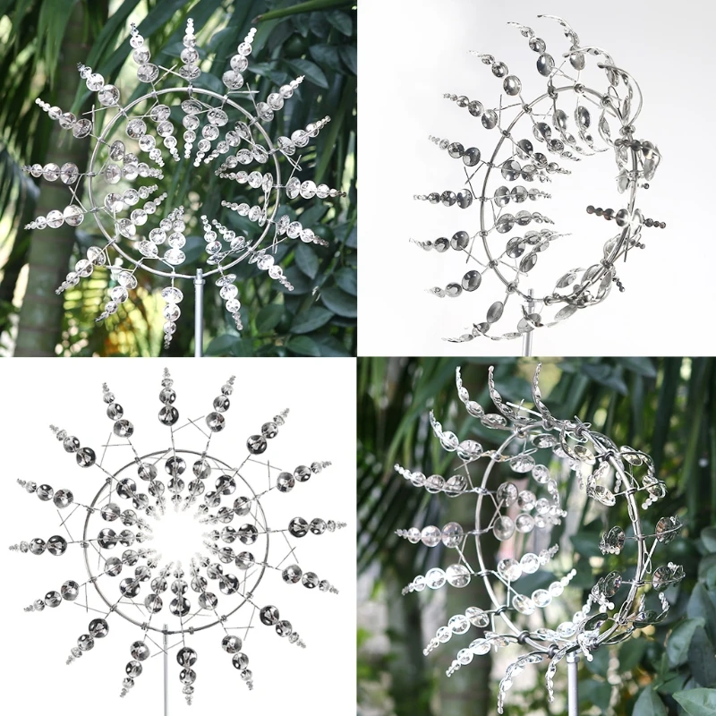 Creative Unique Metal Windmill Geometric Pattern Wind Spinner Catcher Kinetic Chimes with Stake Ornament Garden Yard Patio T3EAOOTDTY