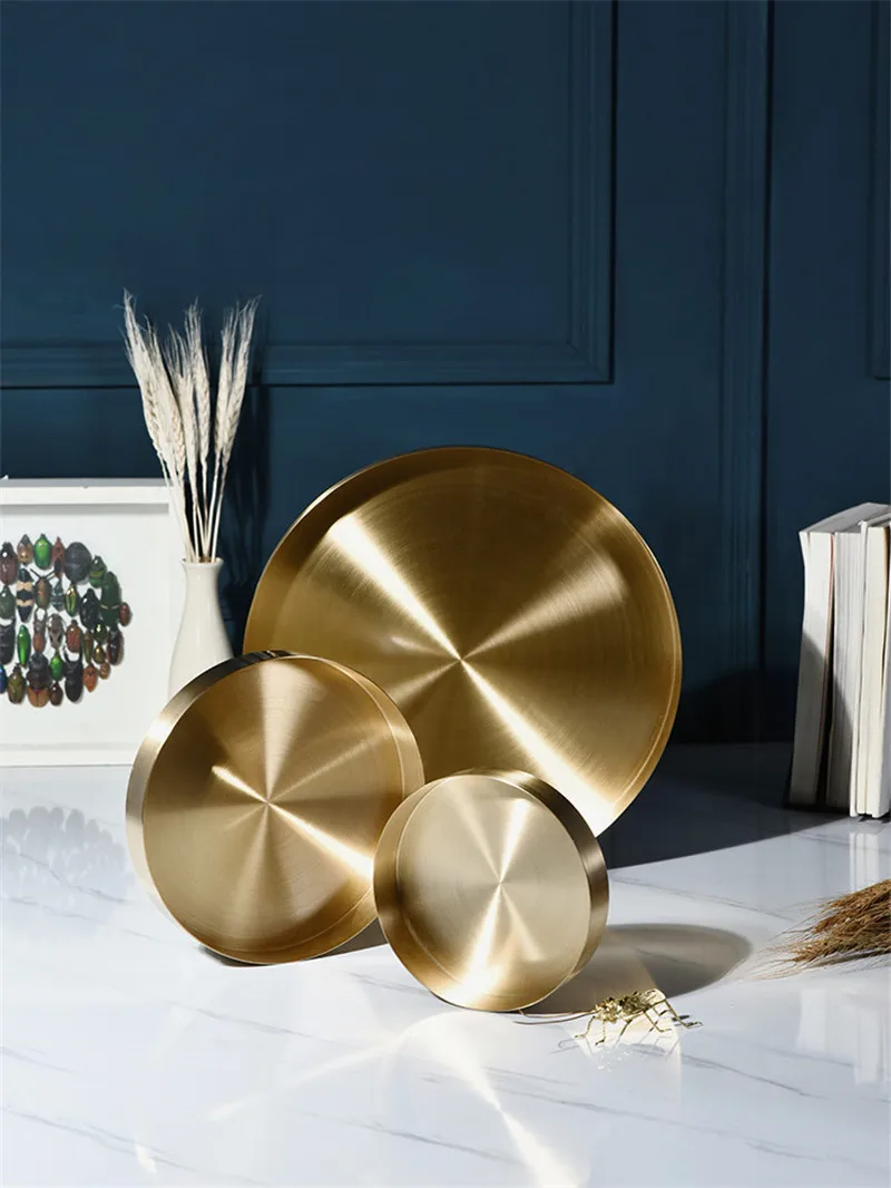 Медный чайный сервиз, твердая латунная круглая Ювелирная тарелка, кухонная настольная полка для хранения, полка для ванной комнаты, Золотая тарелка, новинка, бесплатная доставка