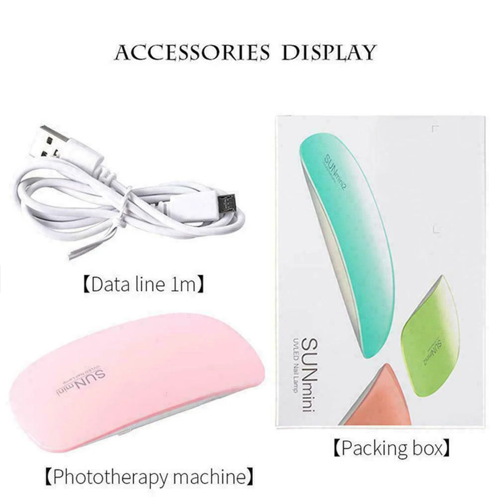Тип изделия: инструмент для ухода за ногтямиМатериал: Поликарбонат и АБС-пластикЦвет: белый/розовыйМощность: 6 ВтДлина волны: 365нм + 405нмТип геля: УФ-гель для ногтей/светодиодный Гель-лак для ногтейСрок службы: прибл. 50000 часовВремя задержки: 45s/60sРазмер и вес:Размер изделия: прибл. 131*67*19 мм/5,2*2,6 * 0.7in (Д * Ш * В)Вес изделия: прибл. 56,5g/2,0 ozОбщий размер: прибл. 135*90*25 мм/5,3*3,5 * 1.0in (Д * Ш * В)Общий вес: прибл. 70 гПосылка:1 шт. * лампа для ногтей1 шт. * USB линия1 шт. * Руководство