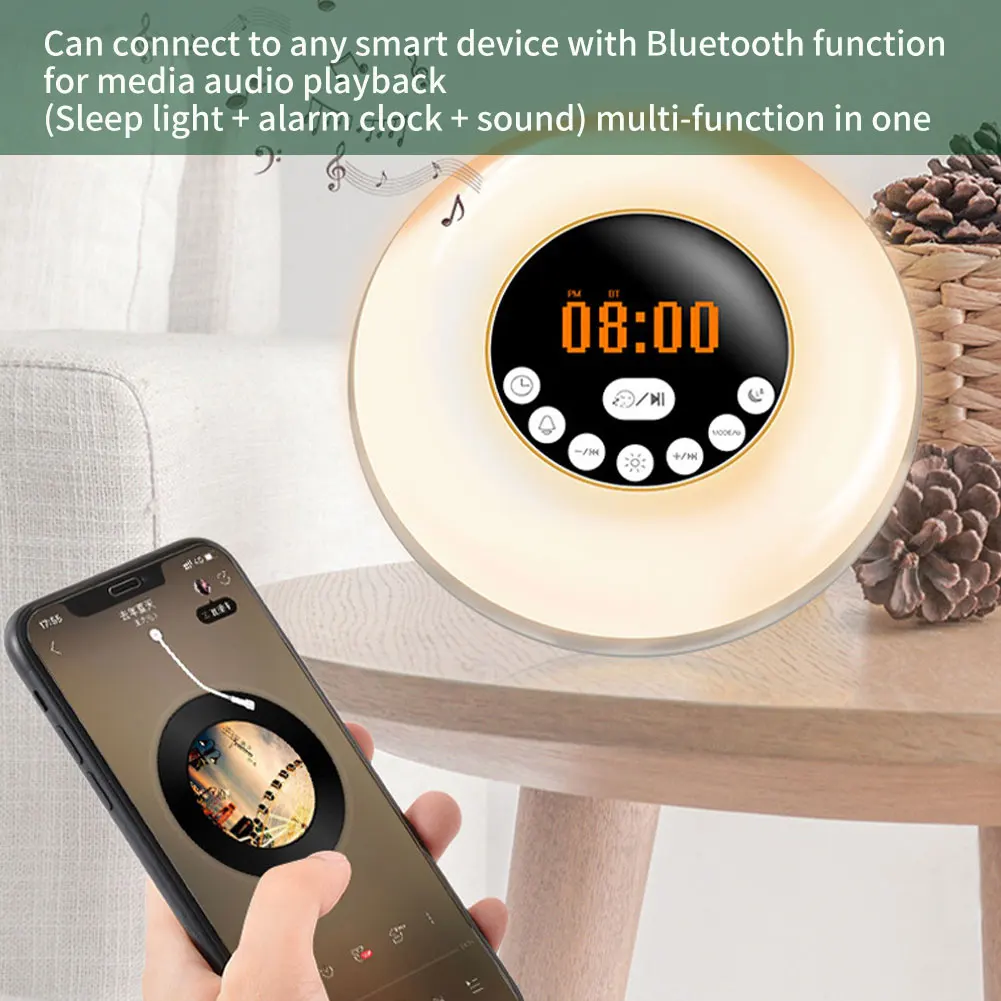 ОписаниеСветильник будильника wake up оснащен цифровым будильником и функцией fm-радио, поэтому вы можете не только использовать его как прикроватную лампу, но и как динамик bluetooth. Прикроватная Ночная лампа будильник-хороший выбор для вас, чтобы программировать регулярные пробуждения и сна.