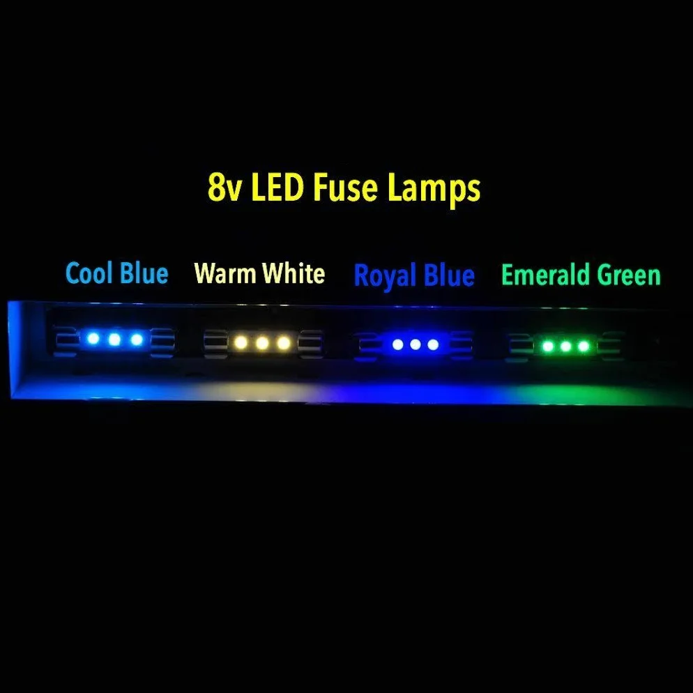 Лампы предохранителя легко менять, потому что пайки нет необходимости. Они сползают в обычный стеклянный держатель предохранителя 1-1/4. Замените все старые лампы предохранителей, и вам никогда не придется делать это снова. Вы влюбитесь в ваш стерео приемник снова, как только вы установите эти новые предохранители. Ваш усилитель действительно будет работать прохладнее и использовать меньше электрического тока, пока вы наслаждаетесь мягким задним освещением. Этот светодиодный предохранитель имеет несколько возможностей применения, потому что они могут работать с 8 вольт переменного или постоянного тока. Для быстрого освещения Используйте держатель предохранителя, зажим для аккумулятора 9 вольт, быстрое разъединение и аккумулятор 9 вольт. Для использования 12 вольт добавьте резистор 100 Ом 1/2 Вт, и теперь у вас есть освещение внутри вашего автомобиля. С адаптером переменного тока 9 вольт Вы можете добавить освещение в большие модели или кукольные домики. Светильник с панелями для небольших проектов с не менее 5 в постоянного тока. Как вы будете использовать этот долговечный светодиодный предохранитель?
