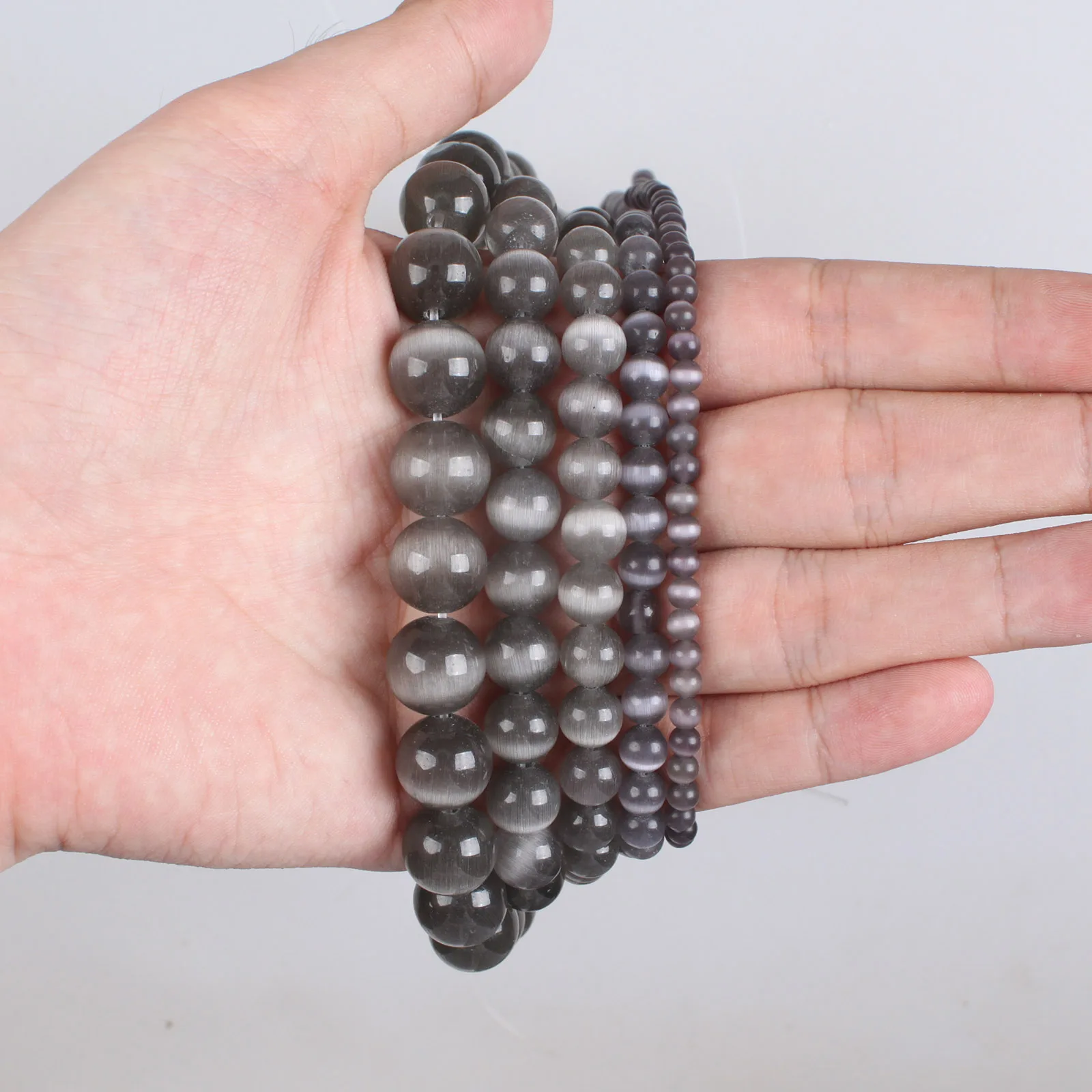 Отзывы о Серые бусины кошачий глаз высокого качества гладкие круглые россыпью 4 6 8 10 12 мм