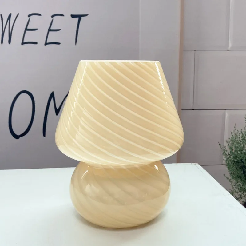 Полосатый гриб светодиодный настольная лампа 7,48 и 9,1 дюймов 3 цвета освещения домашние декорации Спальня прикроватные настольные Стекло Светодиодный лампа в виде гриба