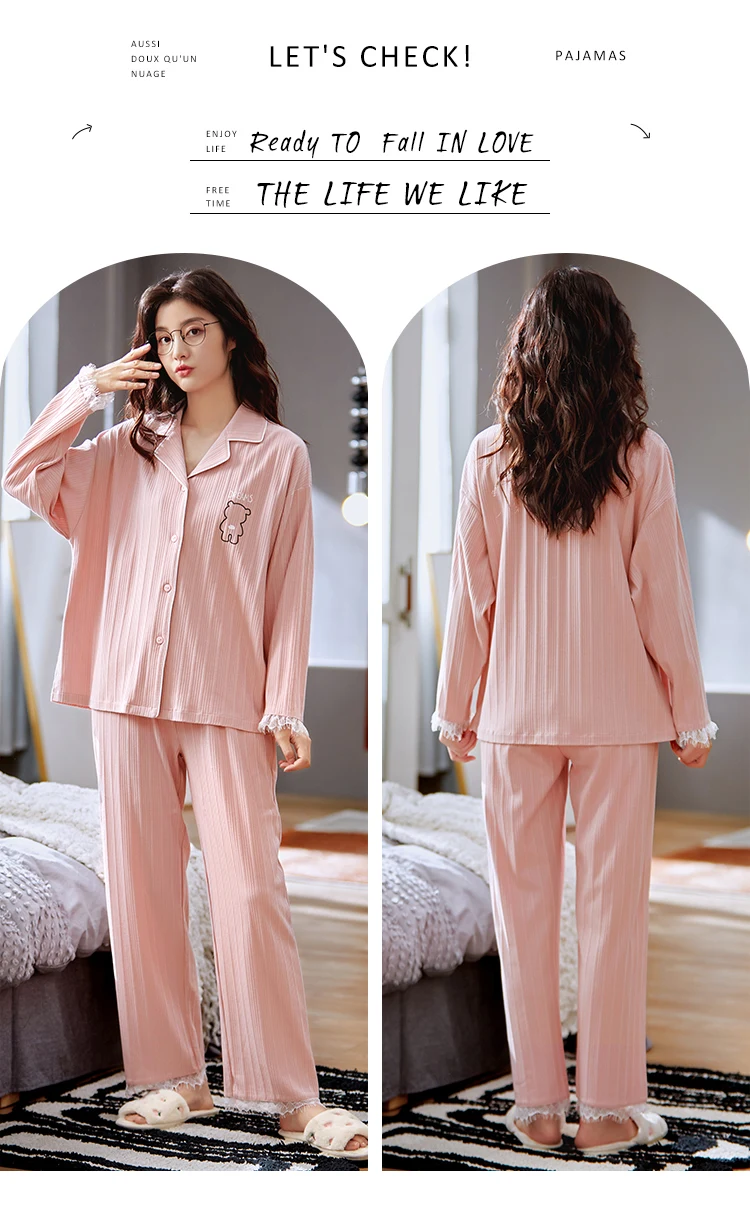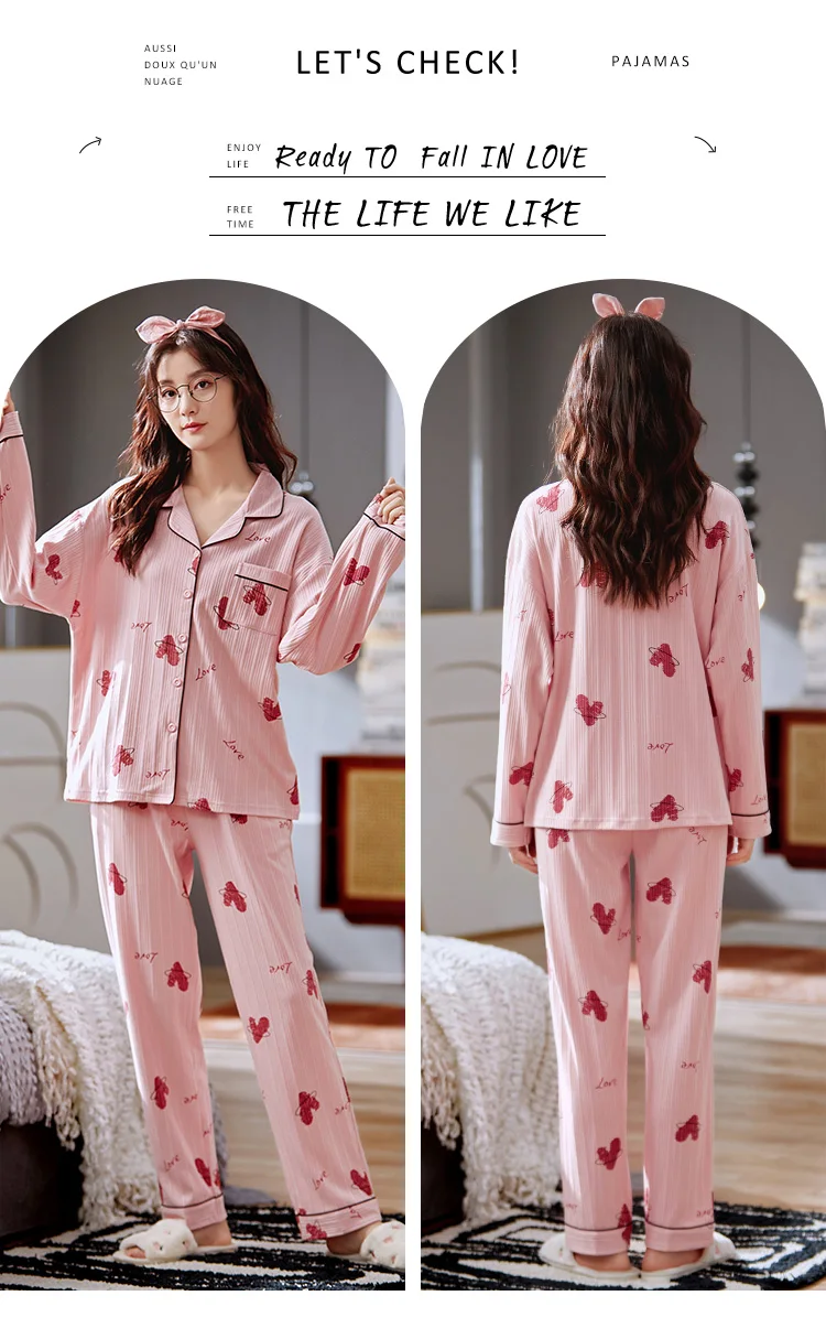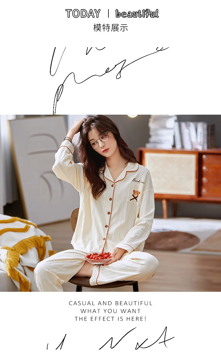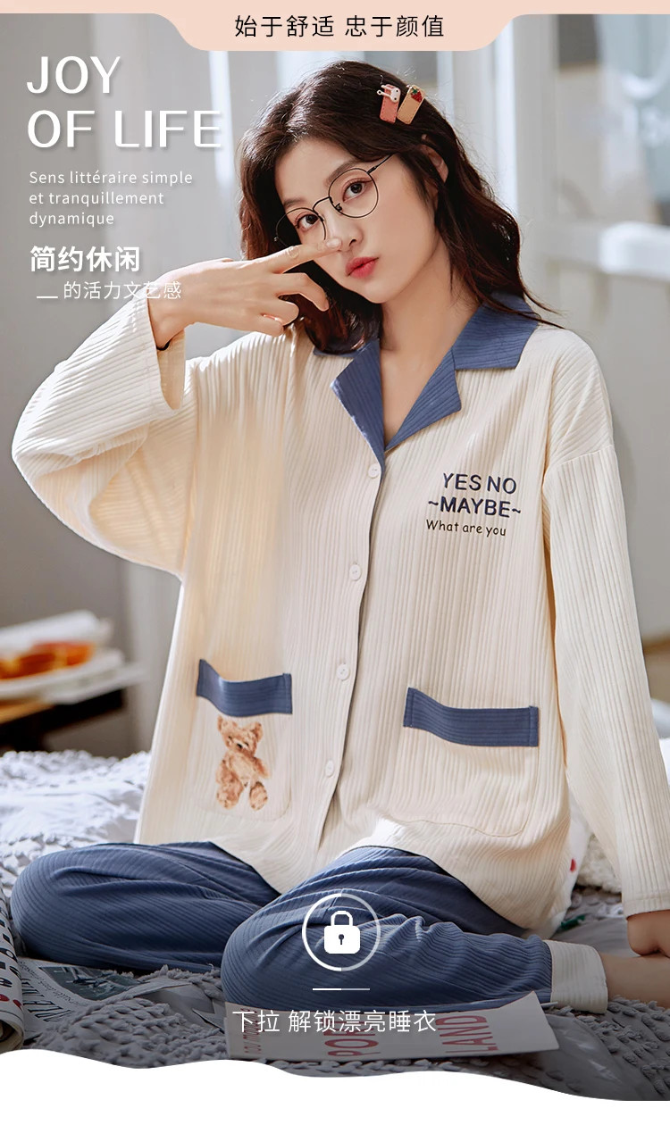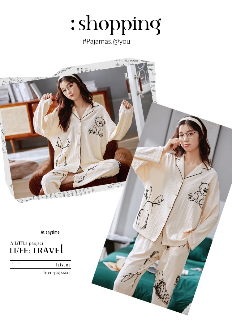 Отзывы о Женский зимний пижамный комплект с отложным воротником и длинными рукавами |