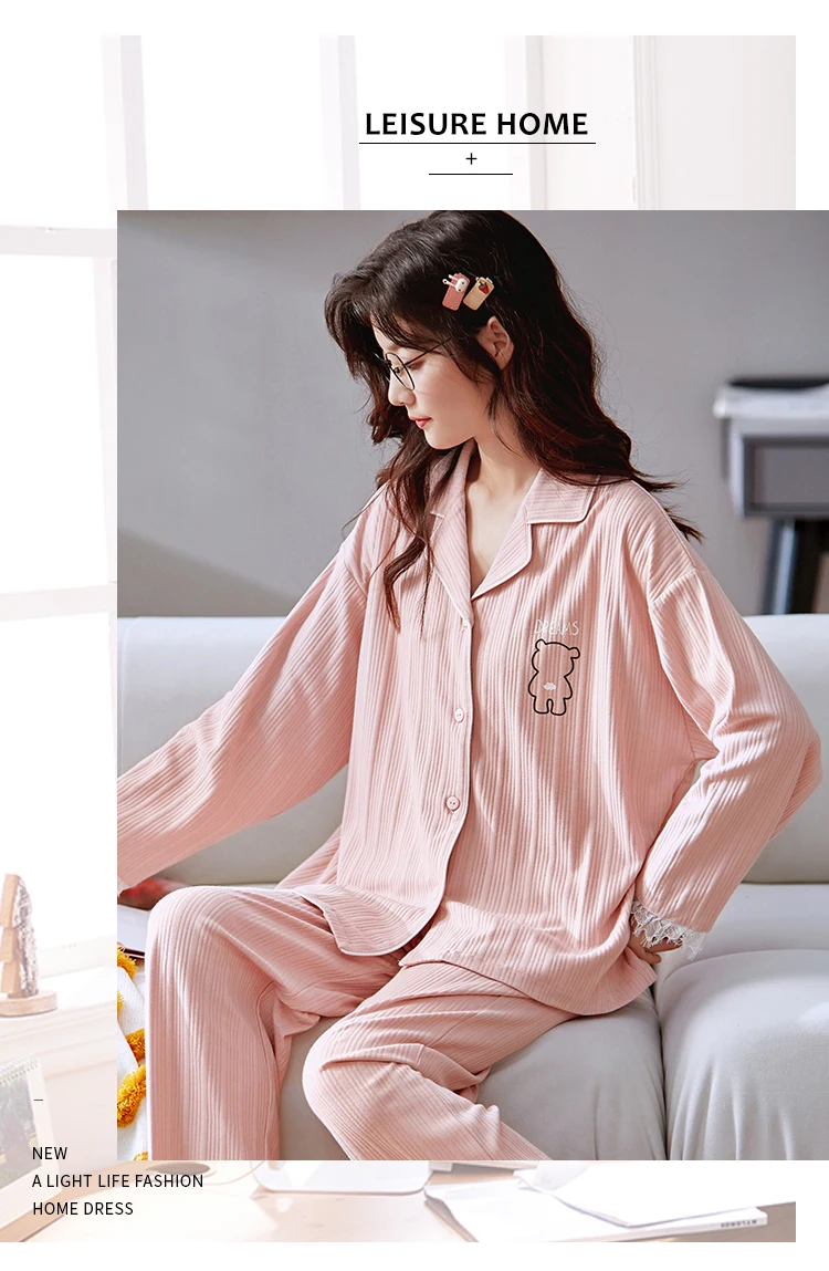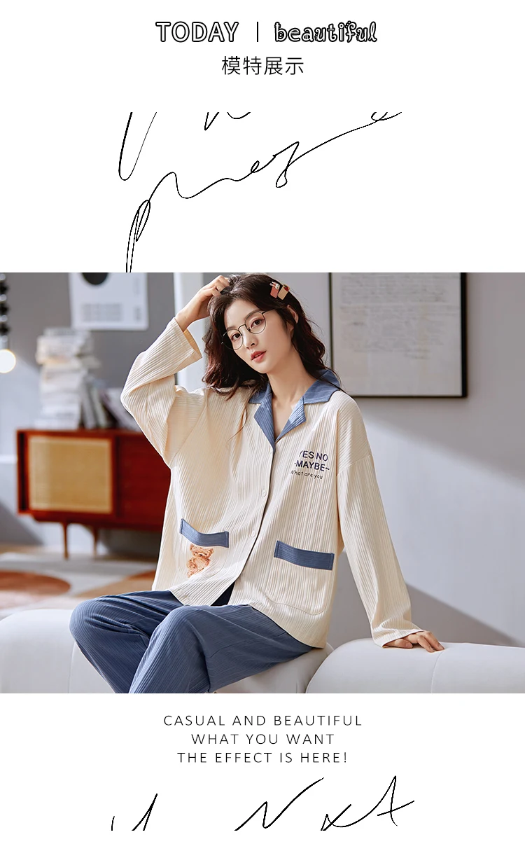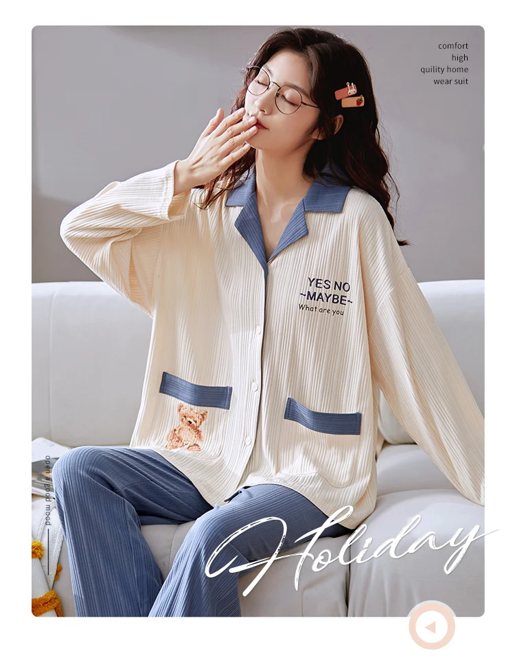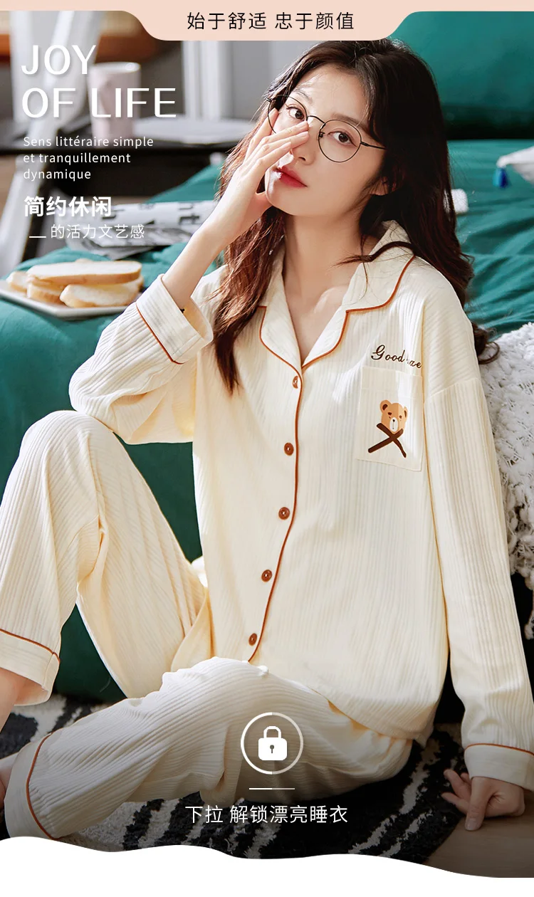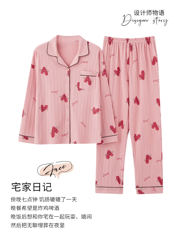 Отзывы о Женский зимний пижамный комплект с отложным воротником и длинными рукавами |