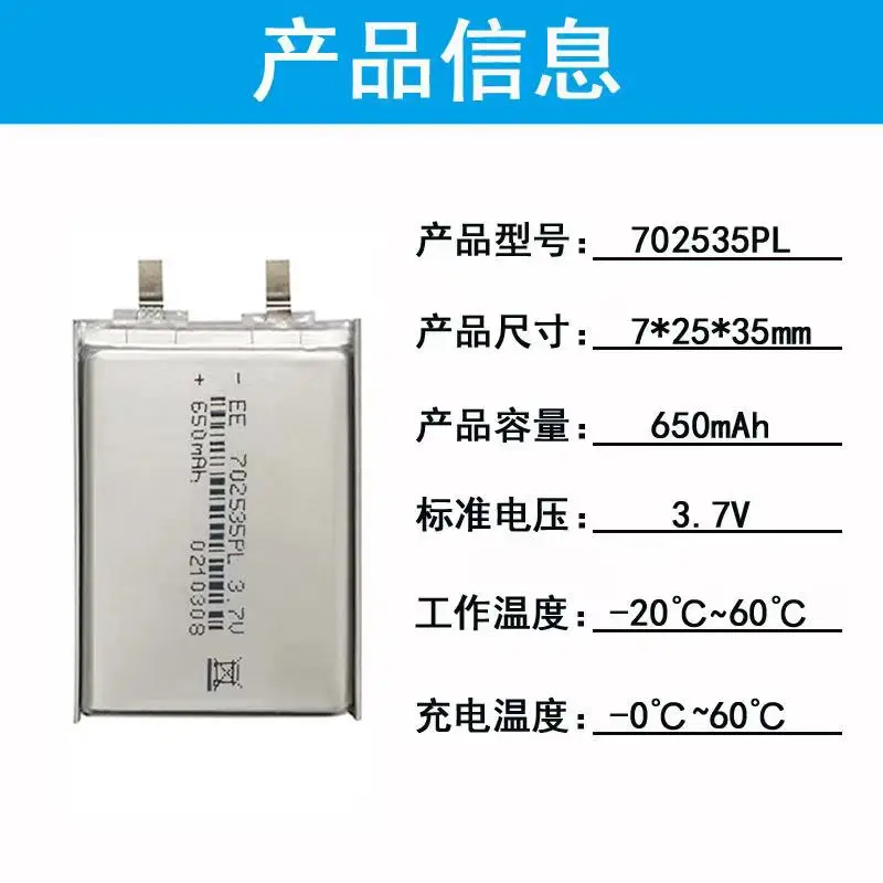 702535 pl литий-полимерный аккумулятор 650 mah 3,7 V фильтр детектор увлажнитель аккумуляторная батарея производители