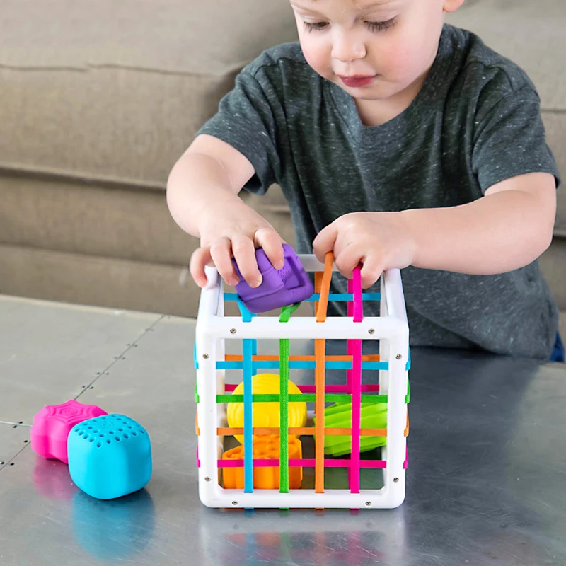 Невероятно уникальный опыт исследования формы! Исследуйте забавные текстуры 6 массивных блоков; Протолкните их через эластичные ленты Куба отлично подходит для возраста 6 месяцев и выше; BPA-free стимулирует мелкую моторику, тактильное исследование, экспериментов куб меры 5,5x5,5x5,5 дюйм (ов); Форма s каждой меры 2 дюйма; Разочарование Бесплатная упаковка
