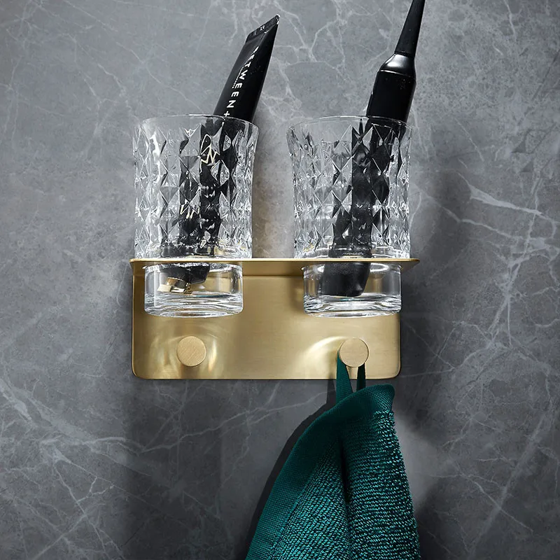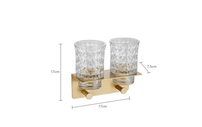 Матовый золотой держатель для чашки и стакана, латунная зубная щетка и стеклянная подставка для стаканчиков, полка для ванной комнаты с крючком, настенное оборудование для ванной