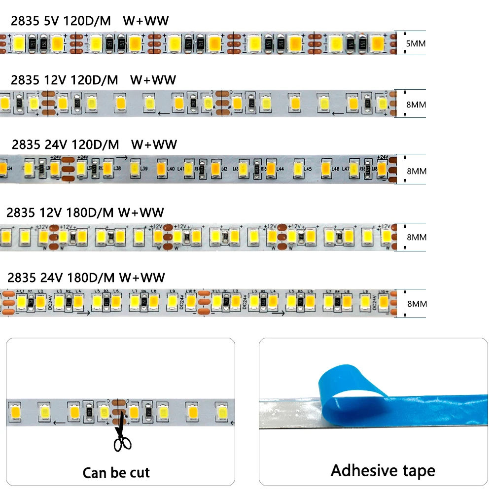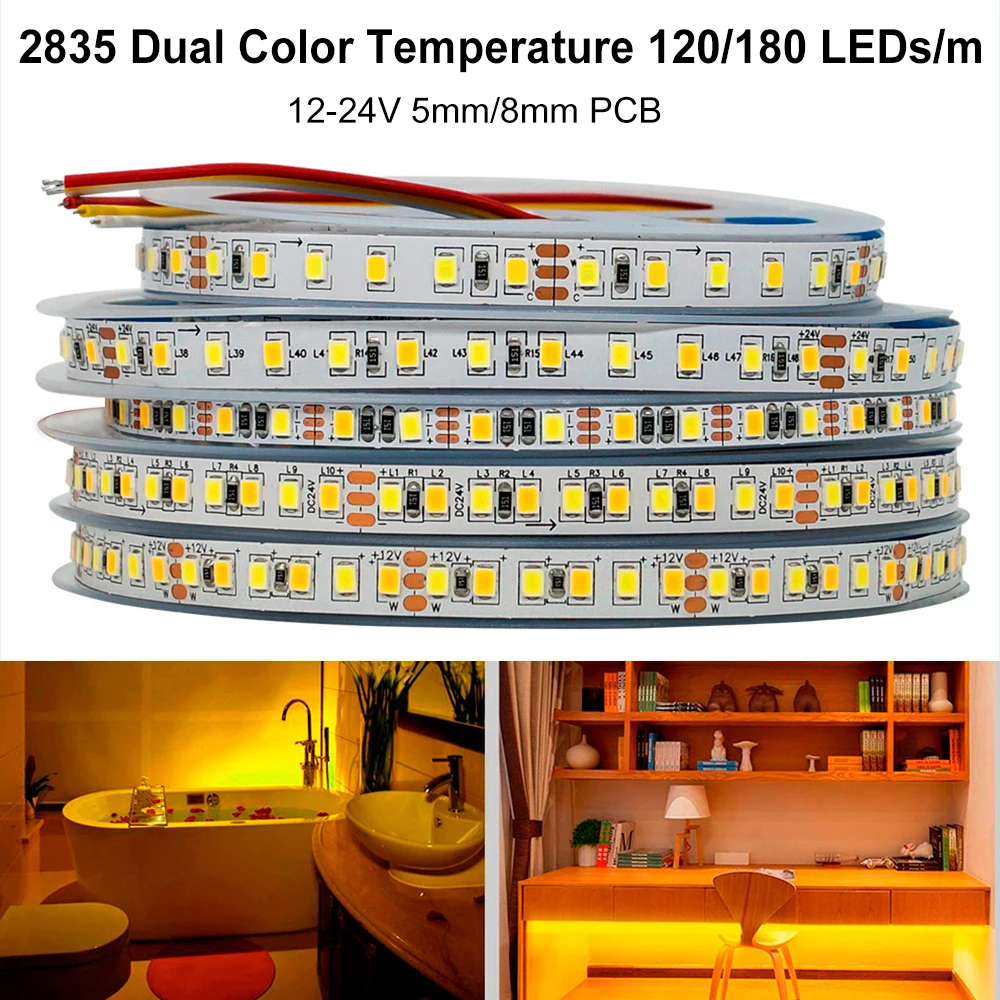Отзывы о Высокая яркость DC5/12/24V 2835CCT двухцветная температура 120/180 лампа/м 5/8 мм PCB 80RA медный