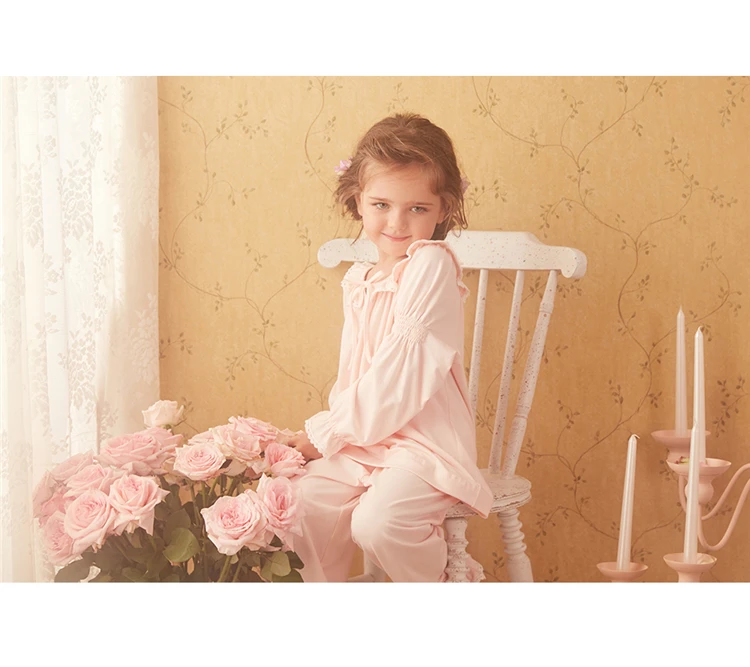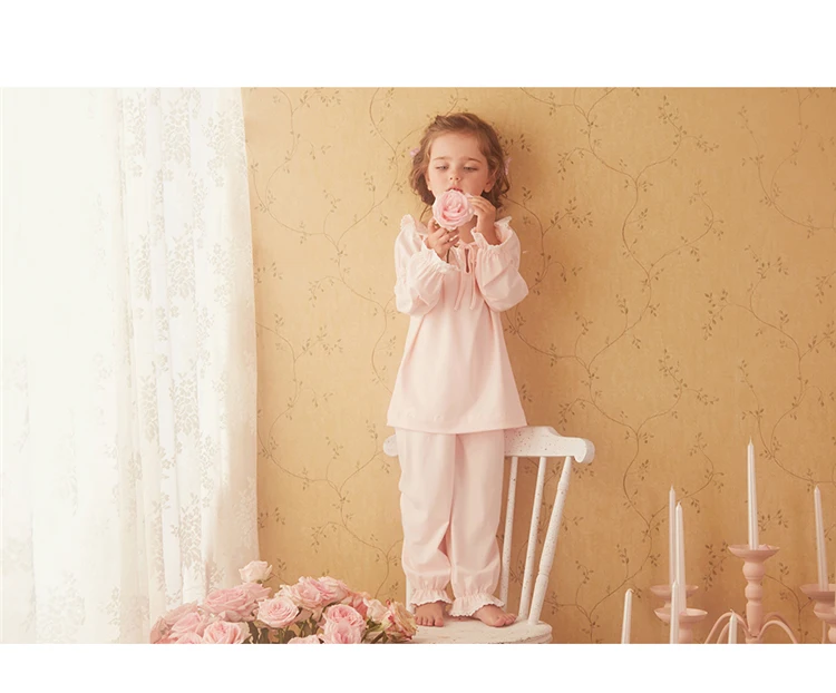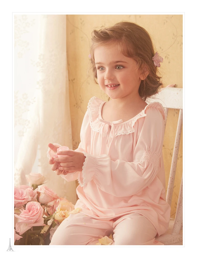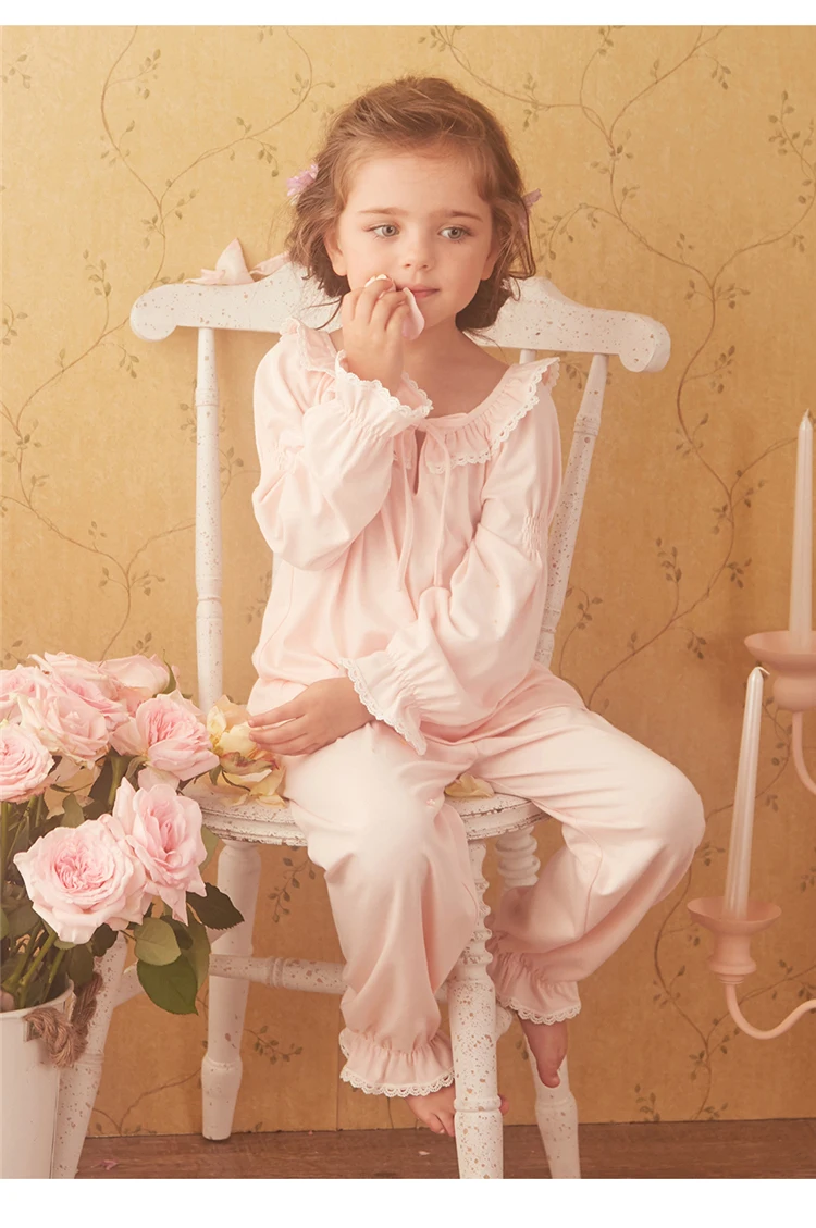 Осенне-зимние детские розовые пижамные комплекты в Стиле Лолита для девочек, топы с круглым вырезом + штаны, винтажный пижамный комплект для малышей, одежда для сна в Королевском Стиле