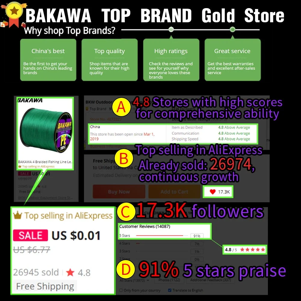 Отзывы о BAKAWA 500 м 300 4-жильная рыболовная леска 10-85 анг. Фунт. Плетеная проволока 100% ПЭ