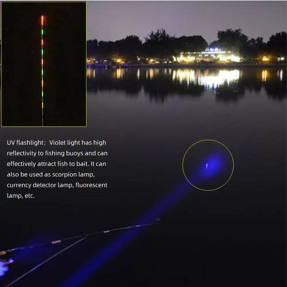 Фиолетовый светильник: фиолетовый светильник обладает высокой отражательной способностью к рыбацким буям и может эффективно притягивать рыбу к приманке. Он также может использоваться как лампа-Скорпион, лампа-детектор валют, флуоресцентная лампа и т. д.