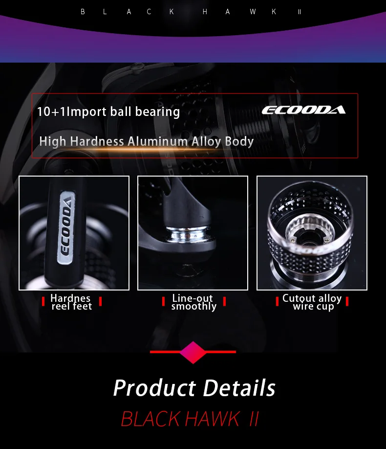 Ecooda Бренд Black Hawk II 1000/1500/2000/3000/4000/45000/5000 спиннинговая Рыболовная катушка для морской воды
