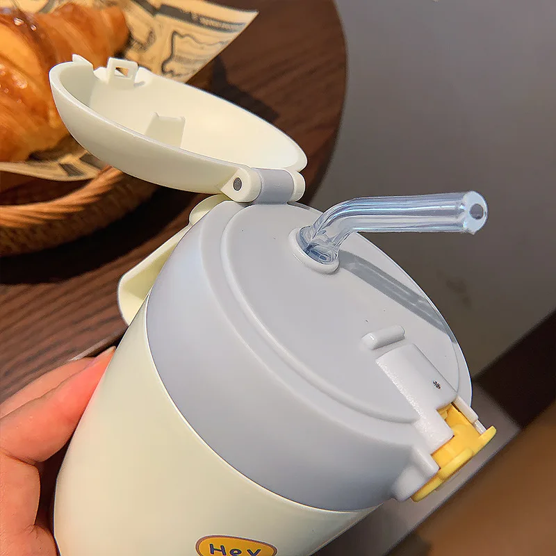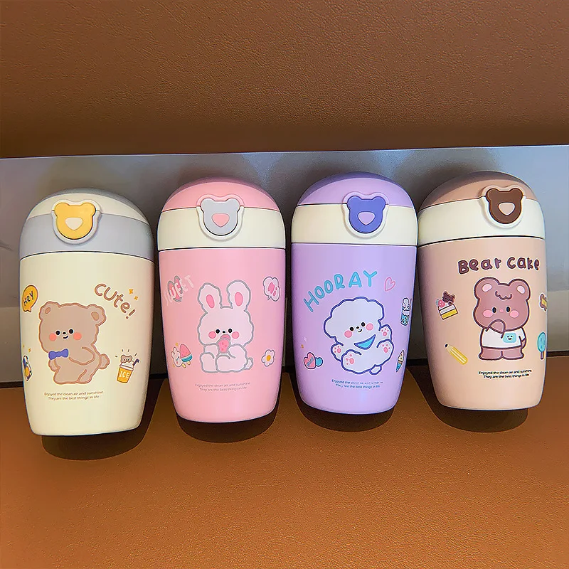 Ins Kawaii Термокружка с медведем из нержавеющей стали, вакуумная детская соломенная бутылка для воды для школы, термос, чашка, милые девичьи чаши для питья