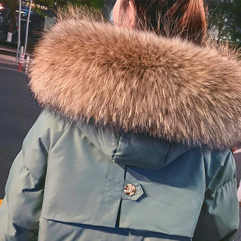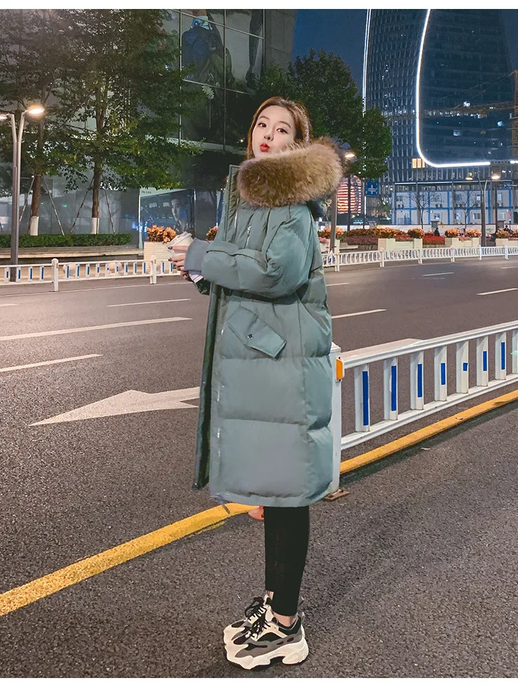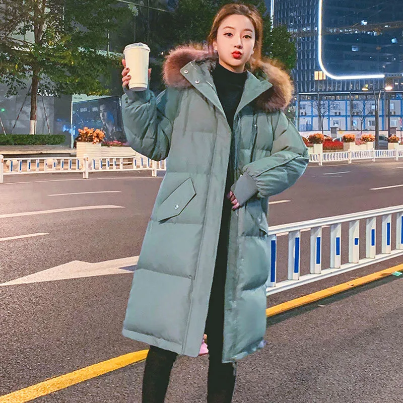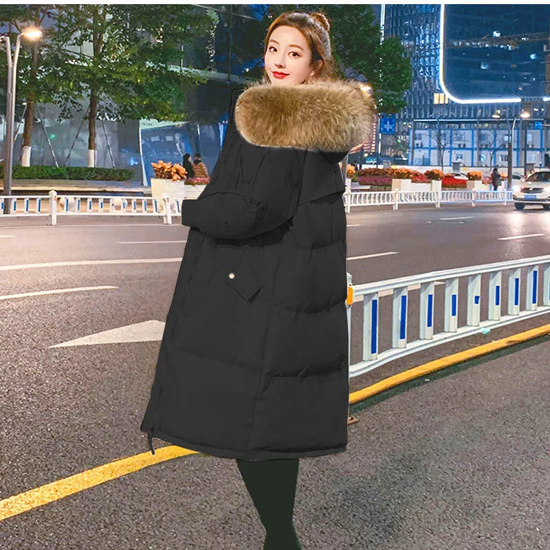Женский пуховик оверсайз, зимняя длинная парка с капюшоном, утолщенная теплая куртка с хлопковой подкладкой, свободная куртка с большим меховым воротником, зимнее пальто