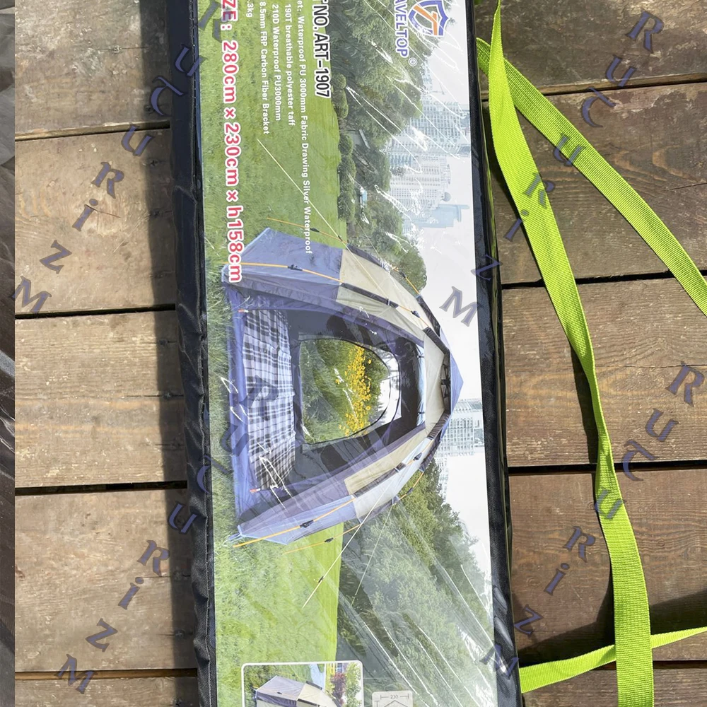 Размер палатки 280х230 см, а высота 158 см, в палатке смогут отлично разместиться для сна три-четыре взрослых человека.