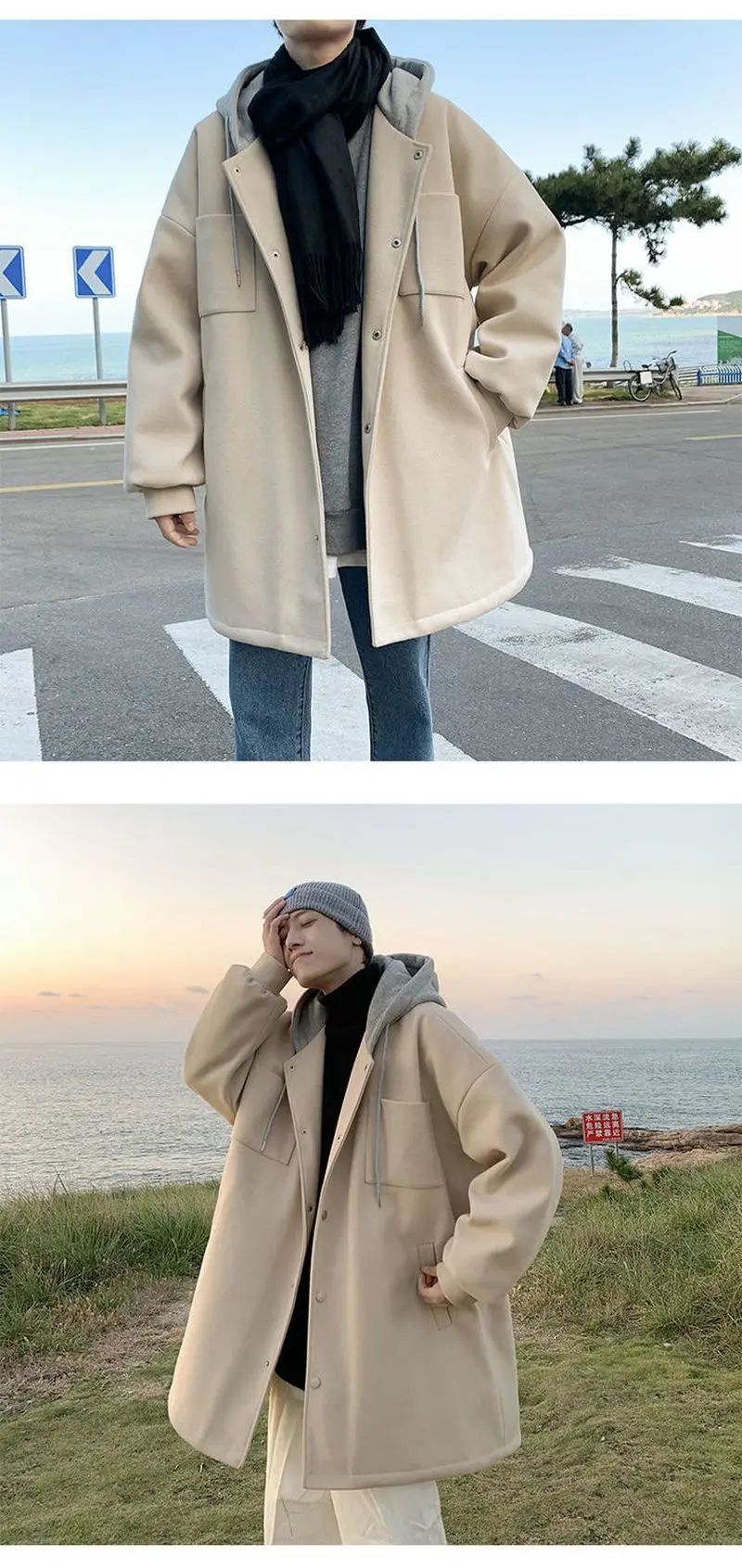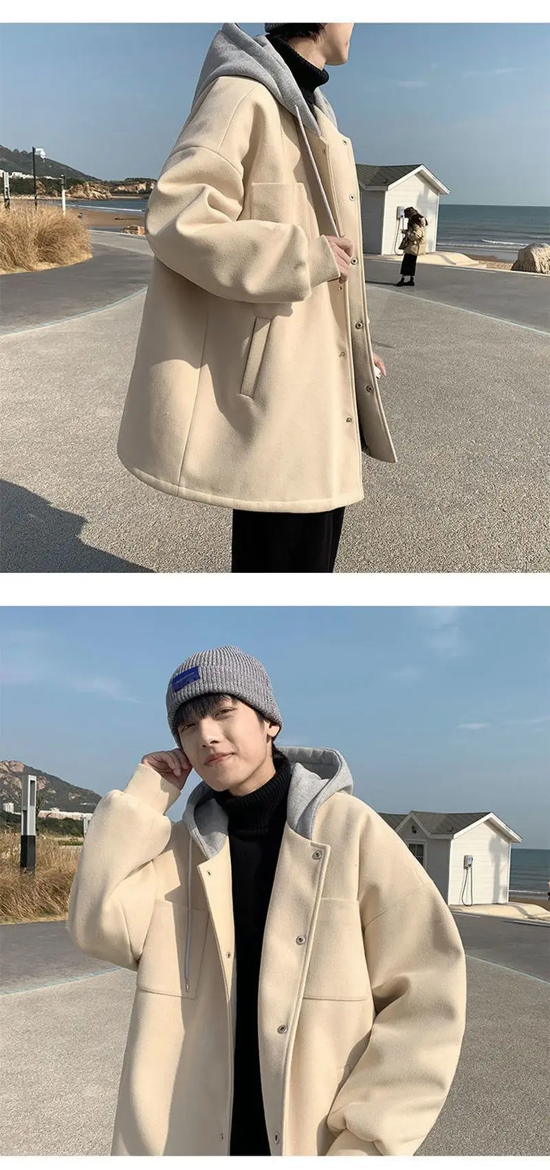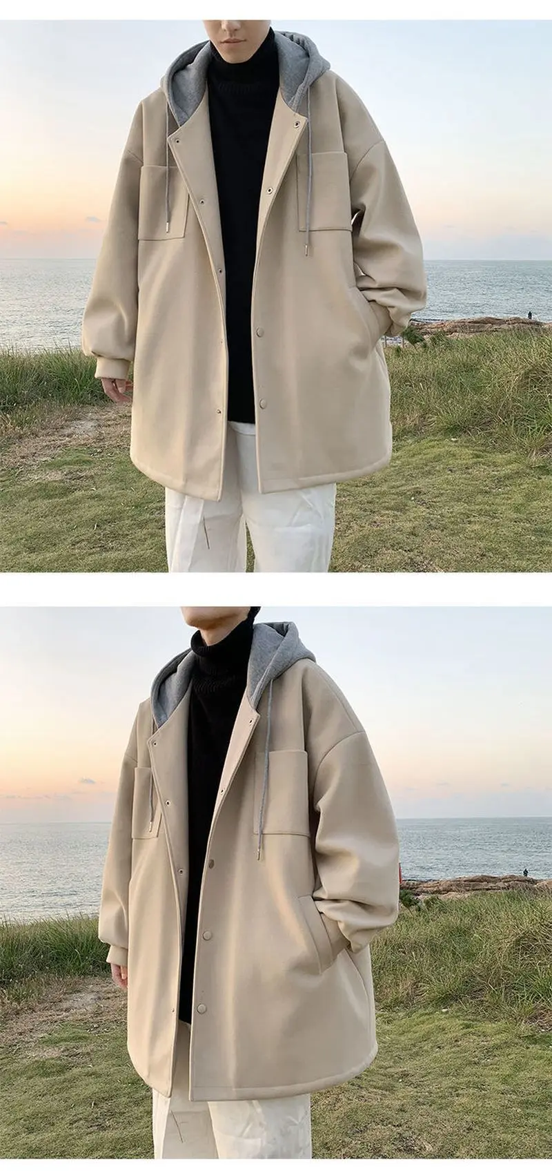 Отзывы о Шерстяное пальто с капюшоном Мужская зимняя одежда новая Толстая свободная