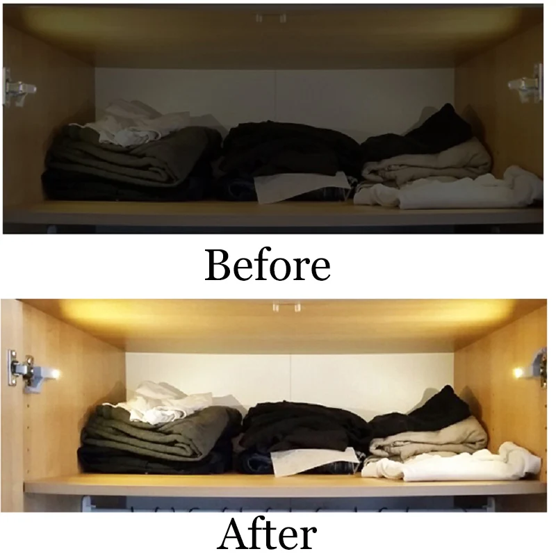 Это шарнирный светодиодный светильник для шкафа, установите его на шарнир, после установки батареи, когда вы откроете шкаф, он будет светильник на весь шкаф, вам не нужно снимать светильник, когда вы найдете что-то в шкафу. Прост в установке и удобен в использовании.