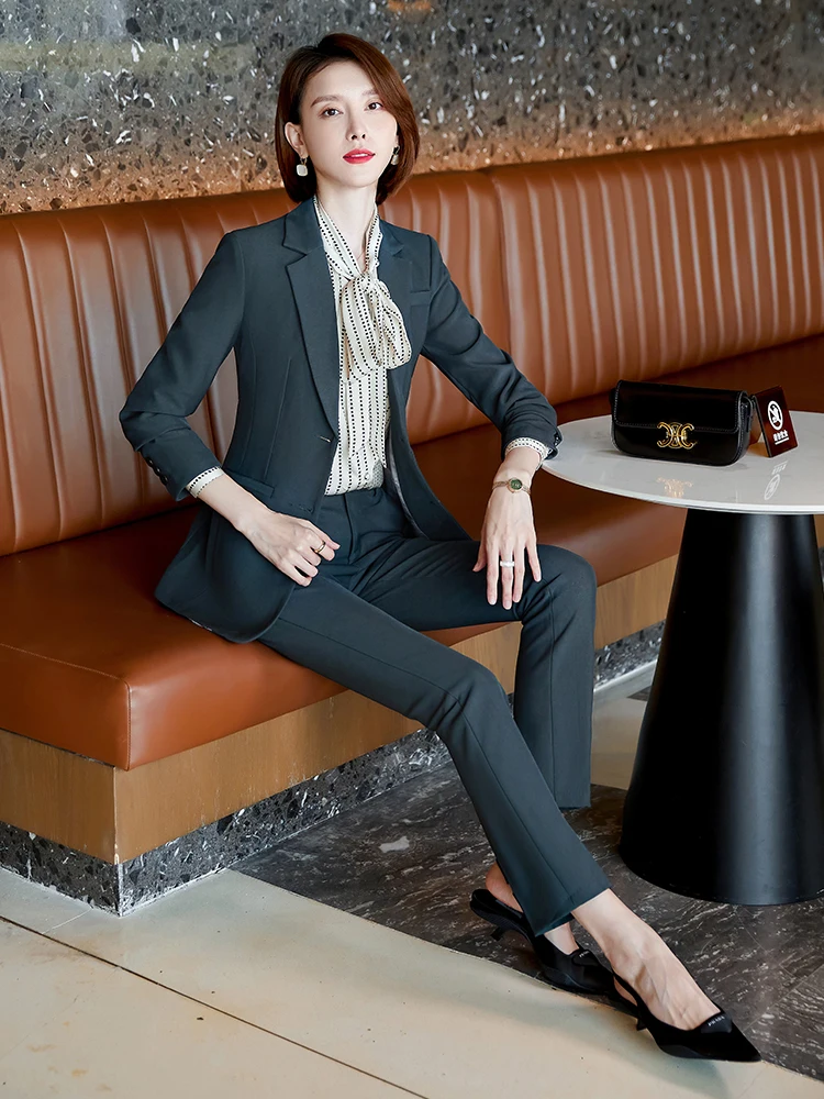 Отзывы о Женский офисный брючный костюм черно-серый или зеленый Деловой жакет с длинным