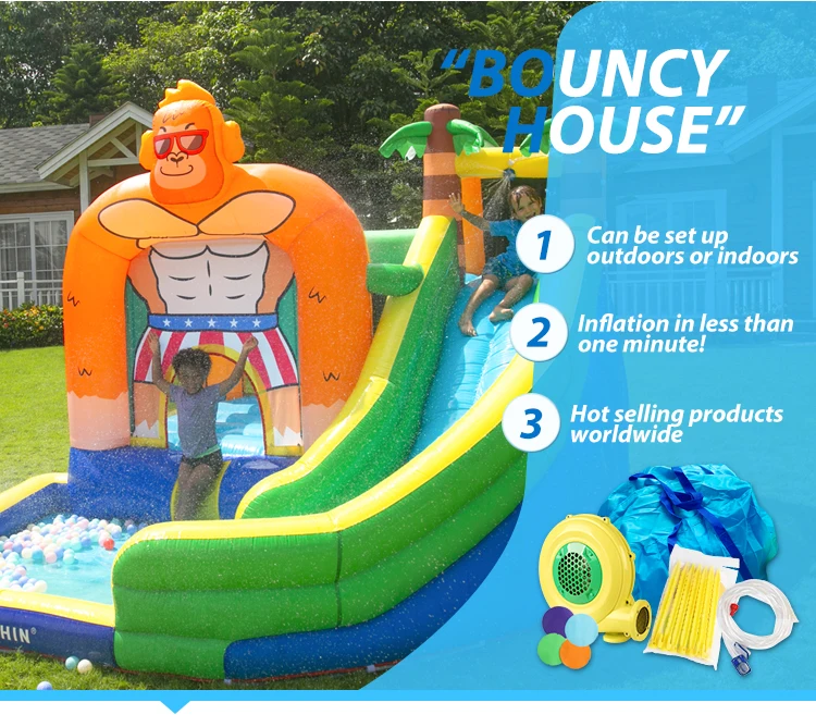 Обезьянка надувная водная горка непромокаемый лес отскакивающий дом аквапарк прыжки пальмы надувной замок для детей в помещении и на открытом воздухе