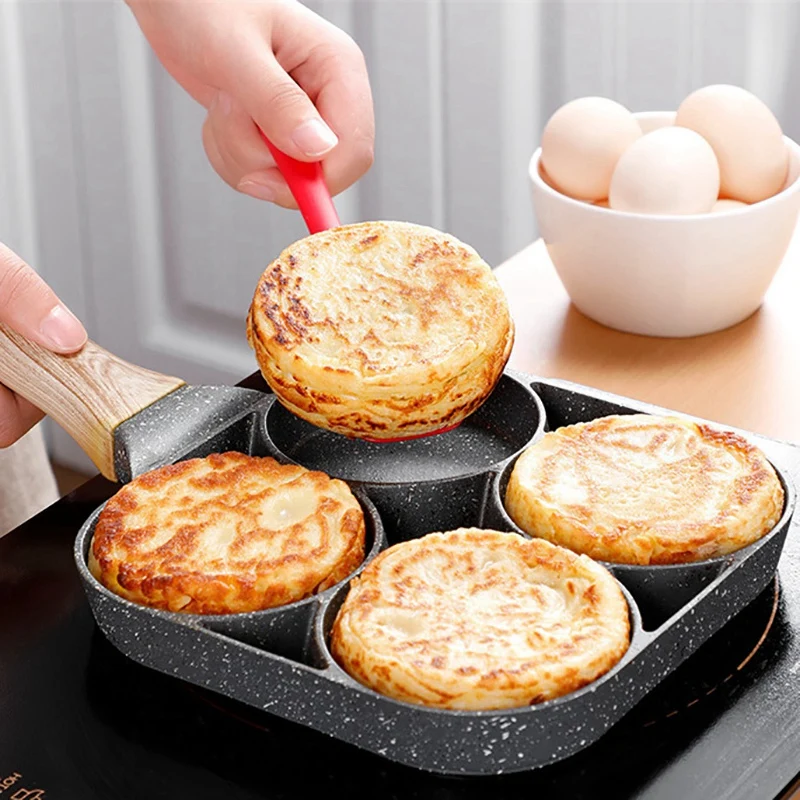 Новая и Улучшенная многофункциональная Сковорода-с 4 чашками, позволяет готовить различные продукты одновременно, такие как яйца, гамбургеры, бекон и т. Д., не беспокоясь о форме.