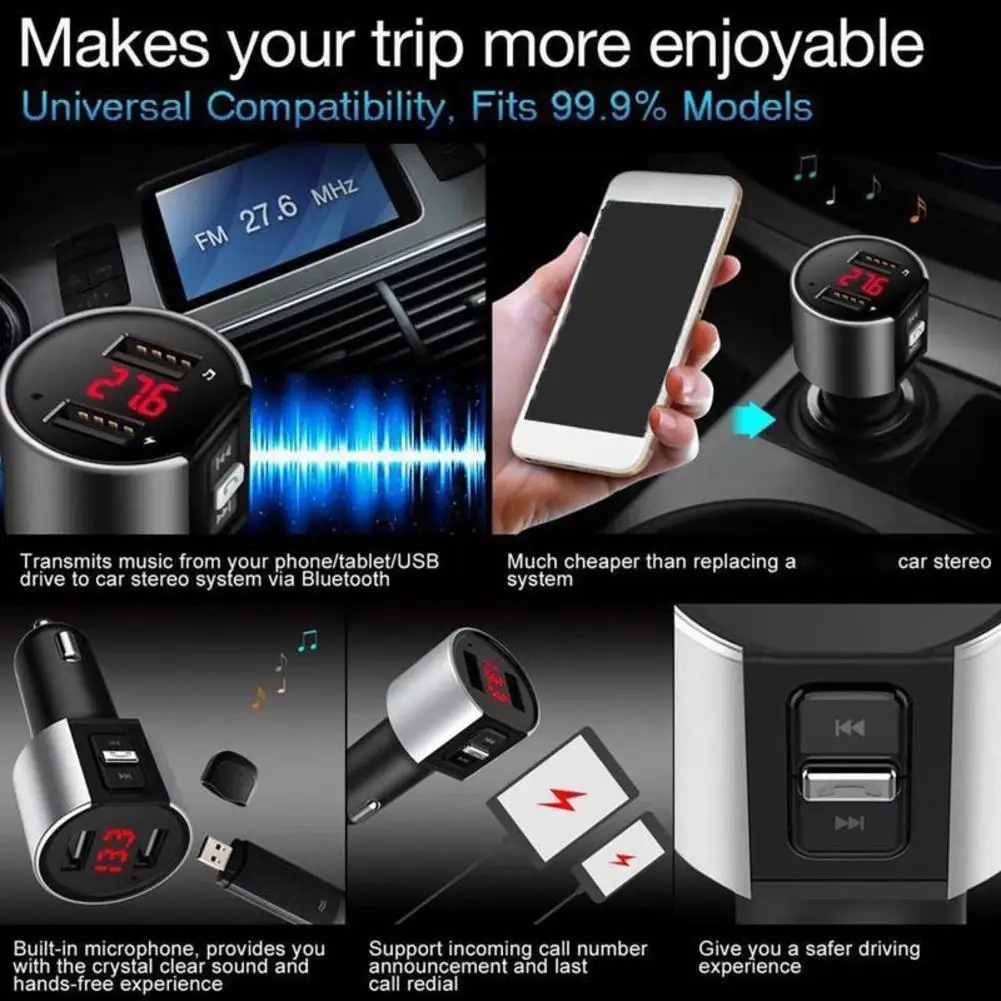 1. Новое беспроводное автомобильное зарядное устройство Bluetooth fm-передатчик.