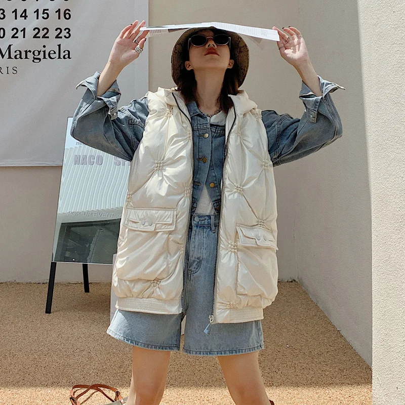 Отзывы о Женская куртка без рукавов с капюшоном свободный дамский жилет на молнии