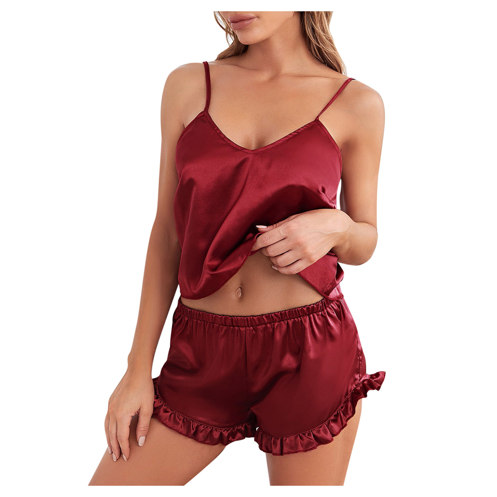 Женский сексуальный Рождественский сексуальный винно-красный топ с лямкой на шее, сексуальные кружевные пижамы с лямкой на шее