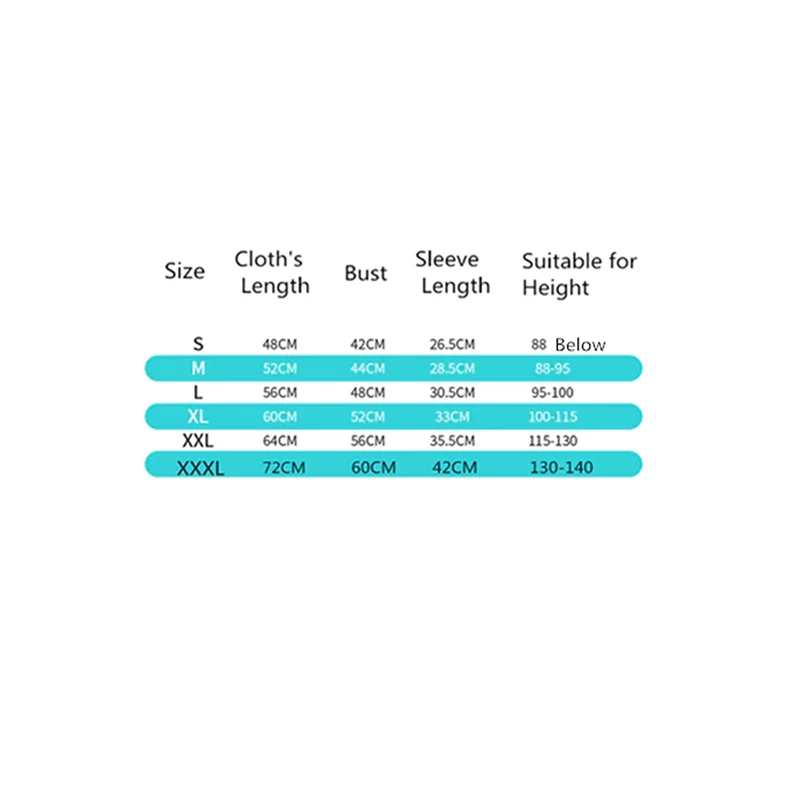 L: спереди (см) 50 сзади (см) 60 Грудь (см) 48 рукав (см) 30 Рост (см) 100-110