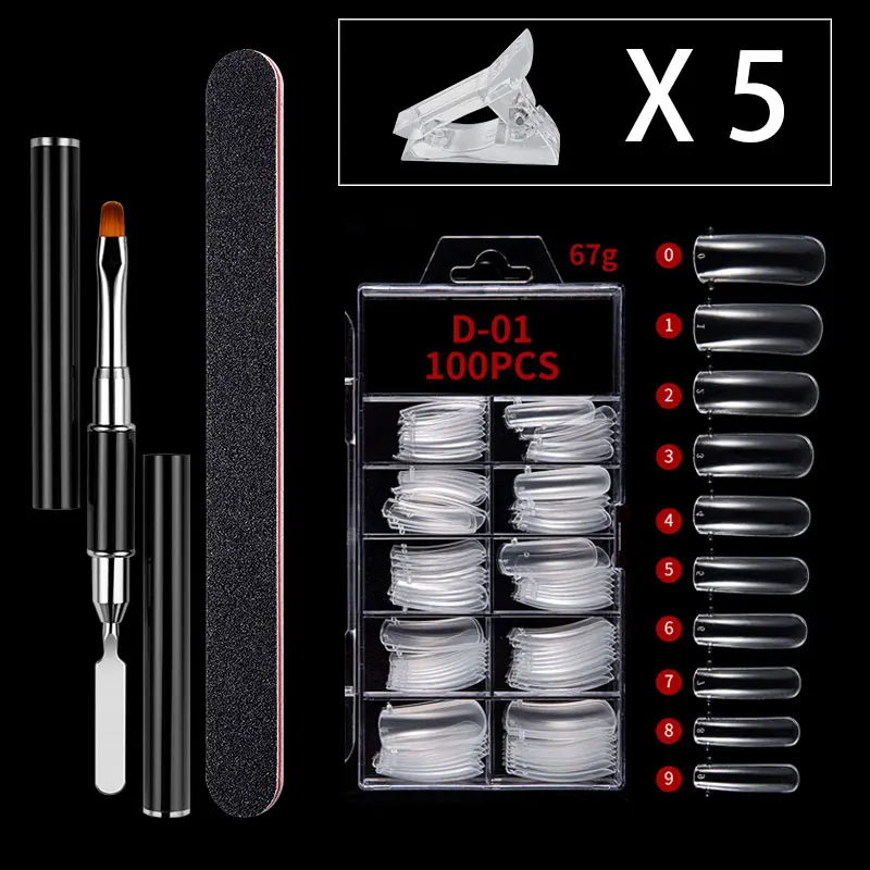 Полигель для ногтей, Базовое покрытие, верхнее покрытие, раствор скольжения или протирание спиртом, пилка для ногтей, щетка для ногтей, зажим для ногтей, две формы, УФ/Светодиодная лампа.