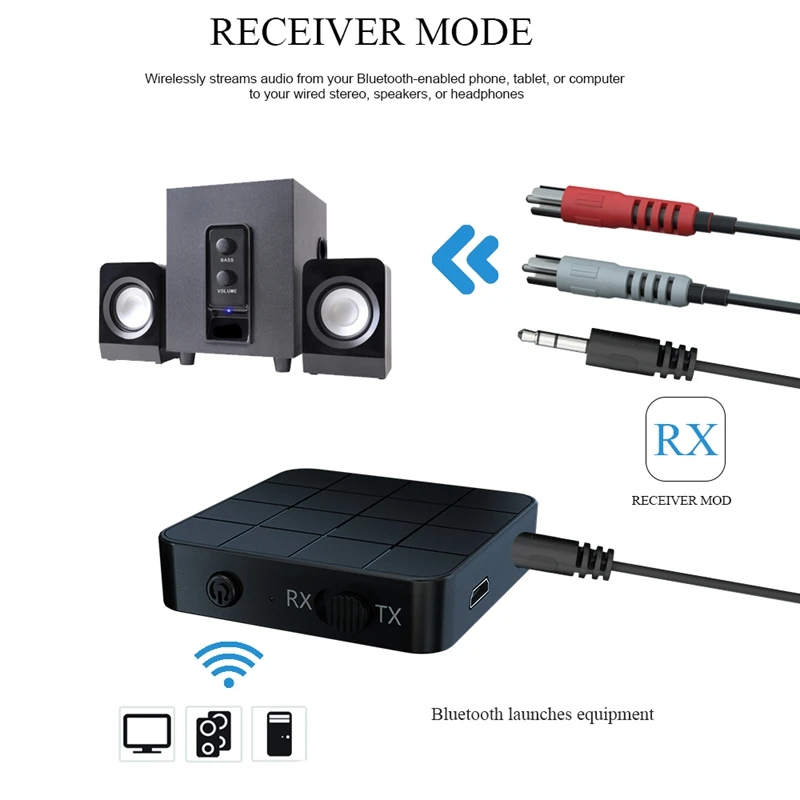 2. Режим передатчика: Беспроводная передача аудио с вашего телевизора без Bluetooth, домашней стереосистемы или CD-плеера на наушники или колонки Bluetooth