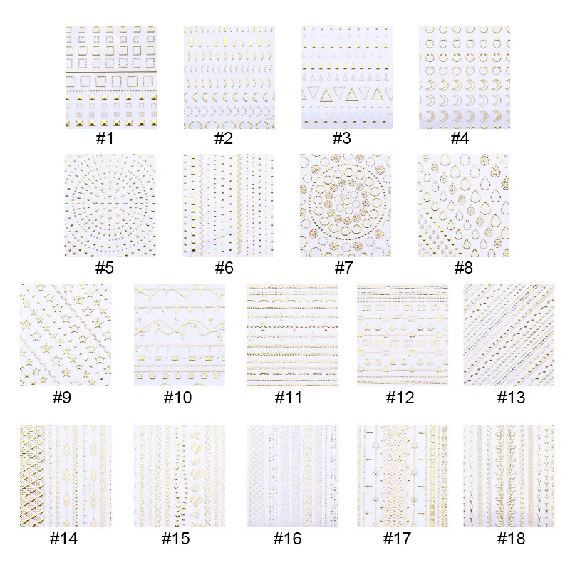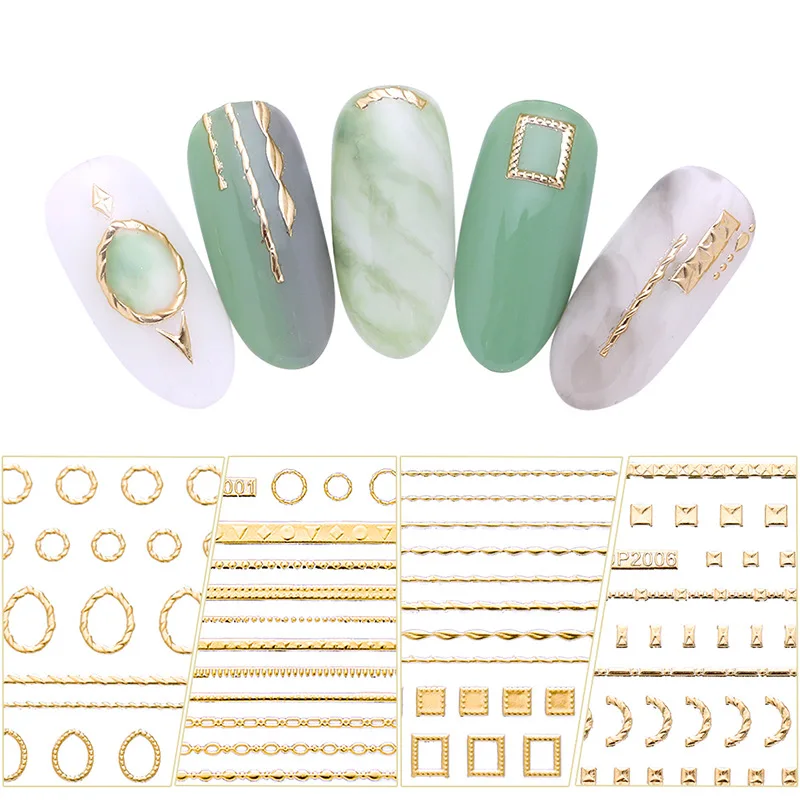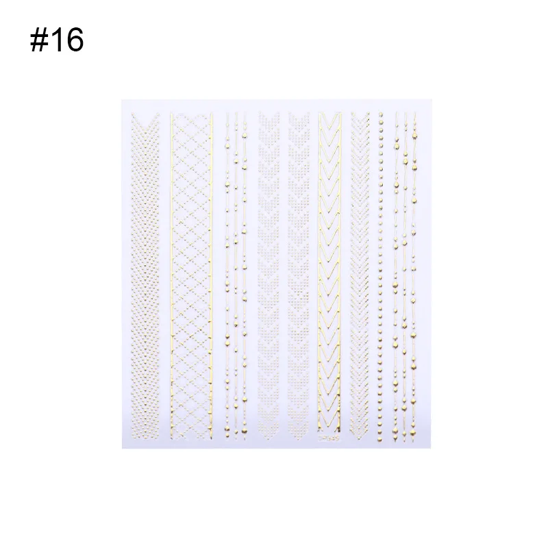 16 шт. новые наклейки для ногтей 3D золотые металлические геометрические узоры наклейки для ногтей DIY украшения для ногтей клейкие переводные наклейки инструменты для дизайна ногтей