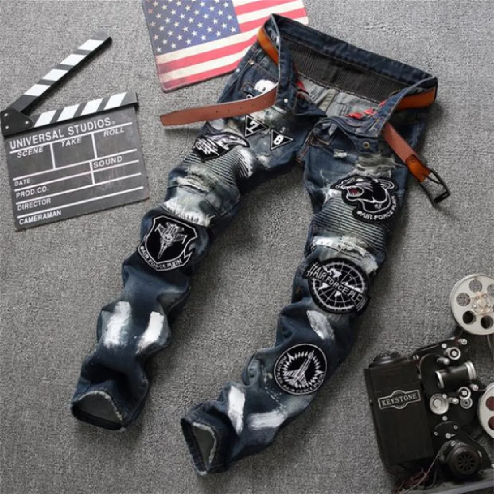 Отзывы о Джинсы мужские с вышивкой тигровой головы модные повседневные зауженные джинсы