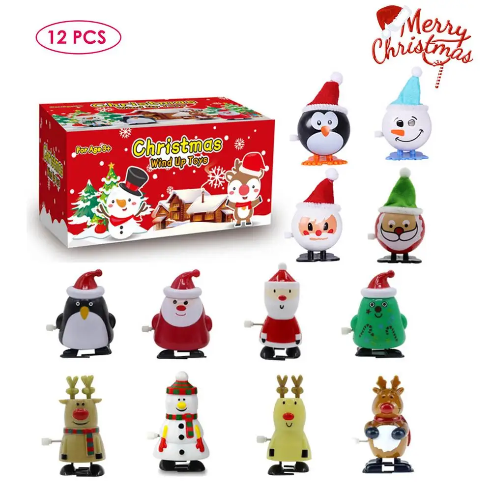 Bullet Points:1、Christmas Wind-up Toys: These Christmas-themed toys include 12 different popular Christmas elements, such as Santa Claus, reindeer, snowman, Christmas tree, and penguin. No one is the same