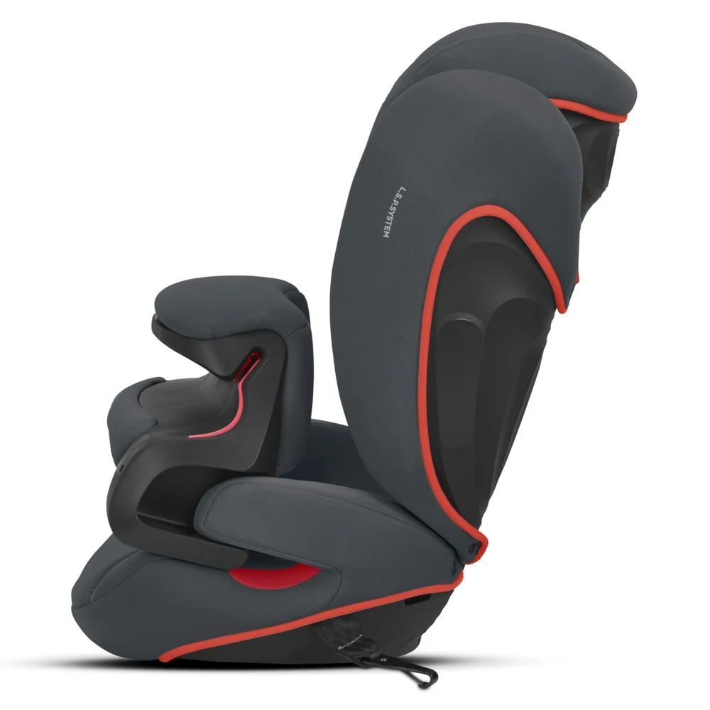• За безопасность ребёнка в автокресле отвечает система защиты от бокового удара L.S.P. system, уменьшающая силу удара, которая воздействует на голову и шею в случае столкновения и на 25% снижающая вероятность травмирования шеи и головы малыша. В эту систему входит широкий подголовник и развитые боковины с двойными стенками;
