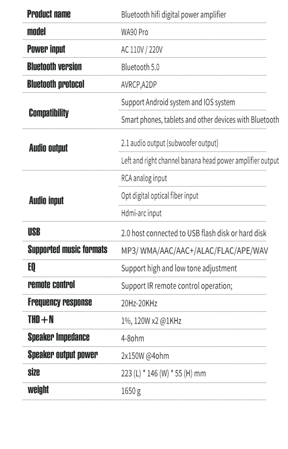 Отзывы о Усилитель Hi-Fi WA90 Pro Bluetooth 5 0 декодер ess9023DAC TPA3251 175 Вт * 2 музыкальный усилитель