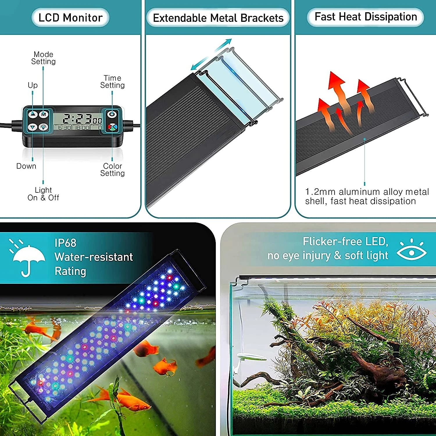 Низкопрофильный Монтажный кронштейн светильник для аквариума, алюминиевый сплав, металлический корпус, приятный на ощупь и быстрый отвод тепла. С высококачественными светодиодами, энергоэффективным, может длиться до 20000 часов освещения.