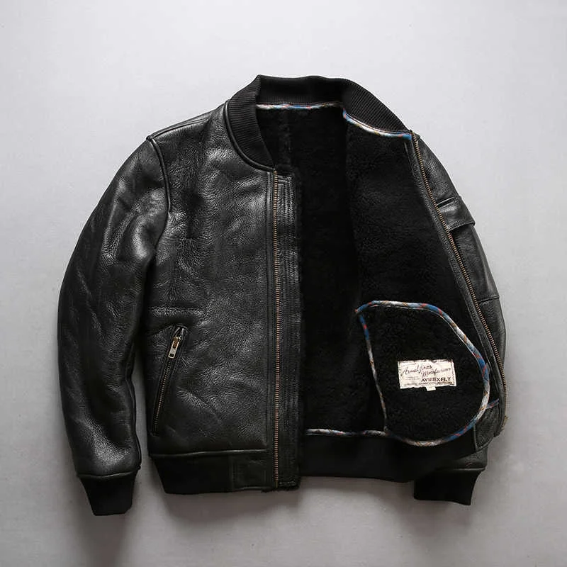 Новинка от производителя, Мужская Черная куртка из натуральной овчины B3, повседневная куртка для полетов на холодную зиму, куртки для пилотов, зимние Русские Пальто