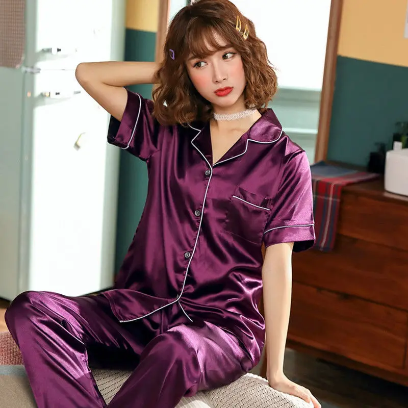 Отзывы о Шелковая пижама для женщин милая Длинная атласная Женский комплект одежды сна