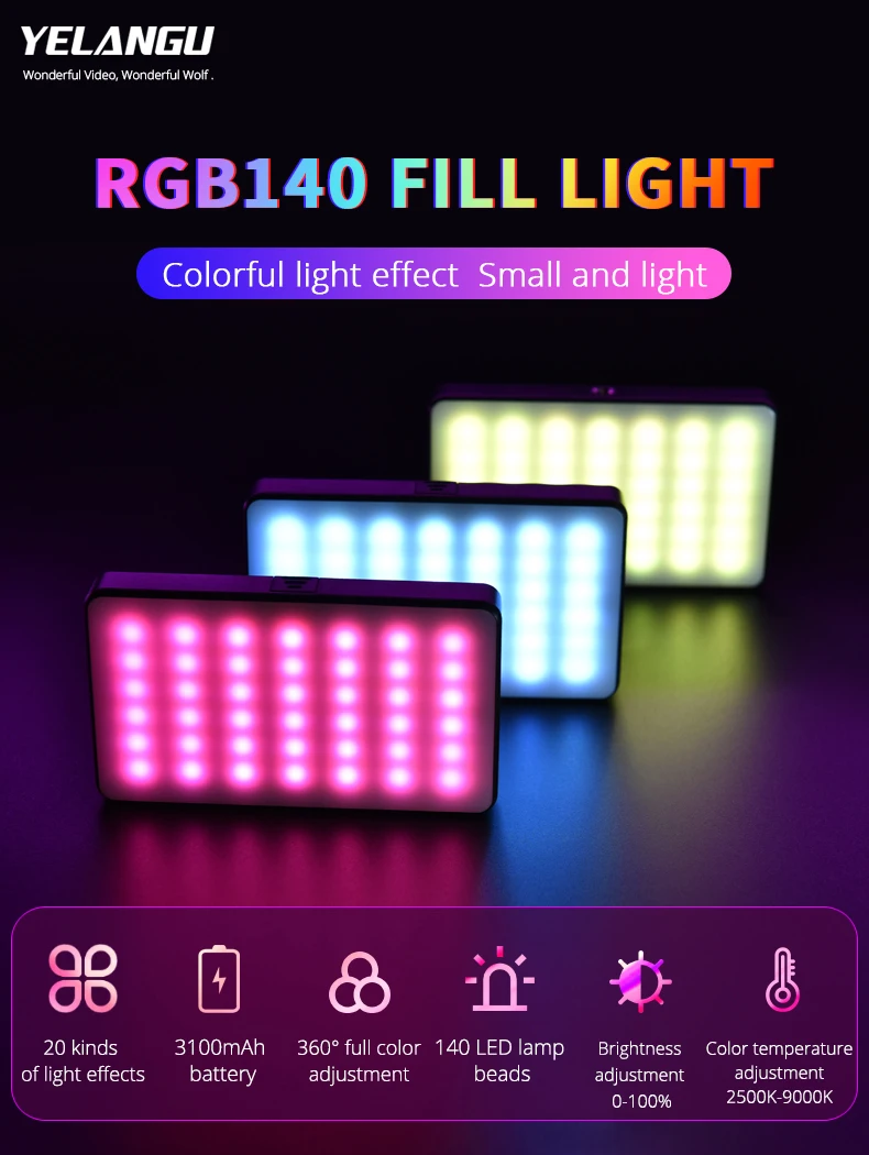 Отзывы о YELANGU W140 RGB светильник портативный фотосвет свет для студии DSLR камера смартфон