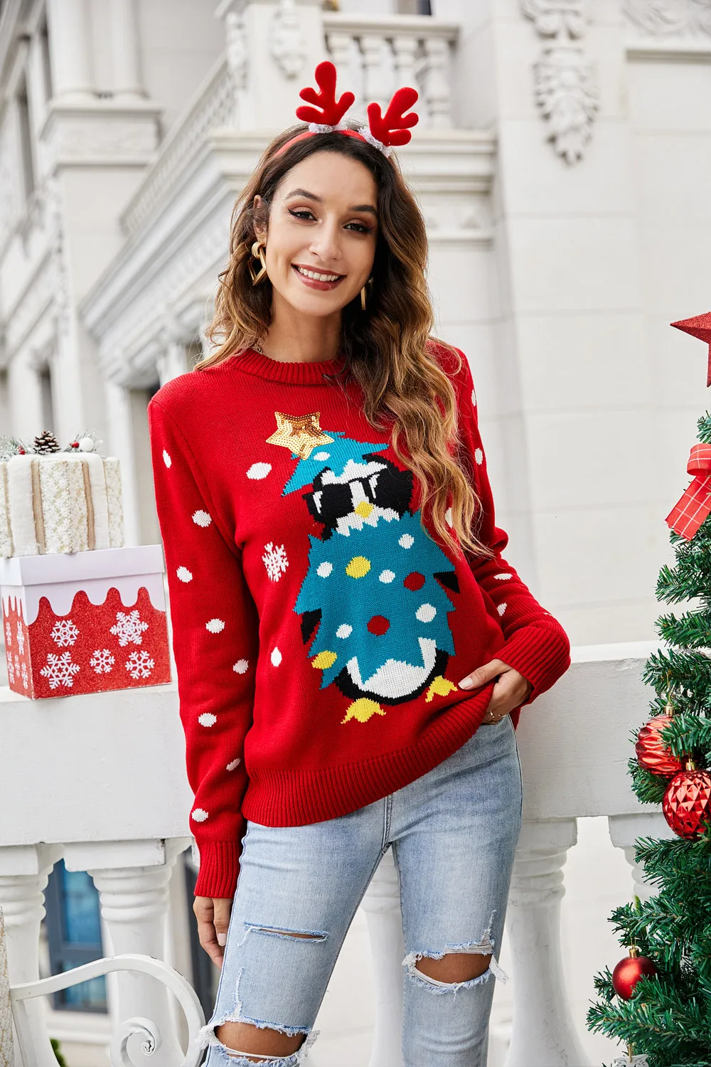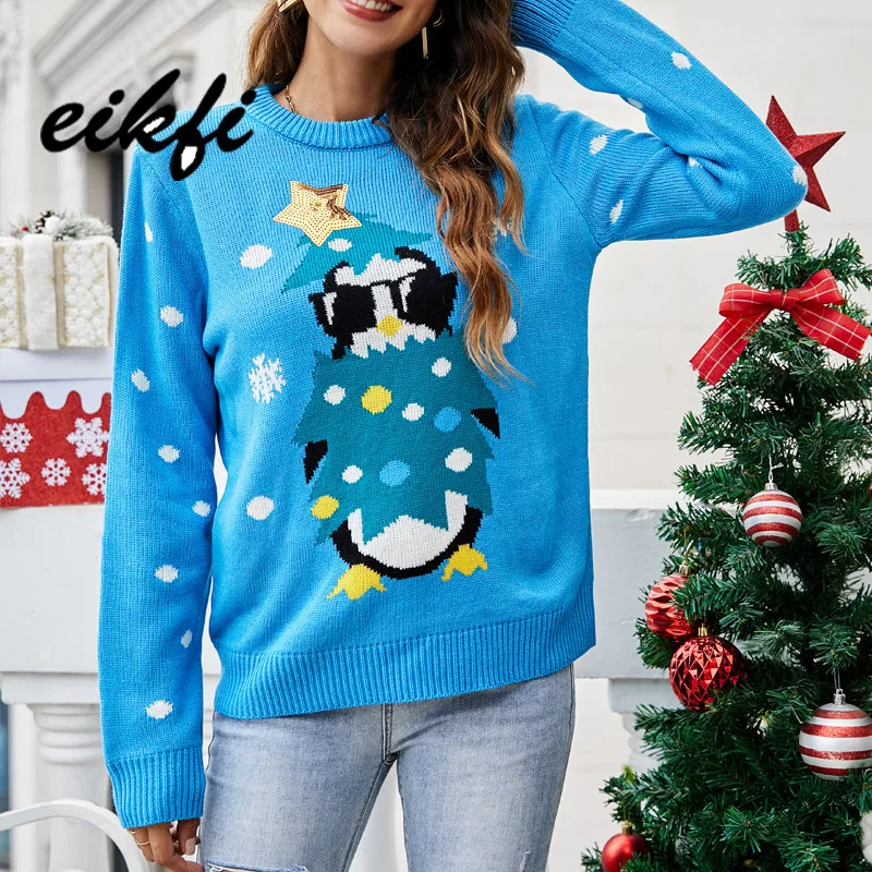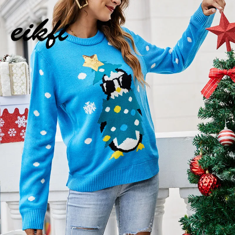 Отзывы о Рождественский женский свитер EIKFI с мультяшным пингвином Осень-зима офисные