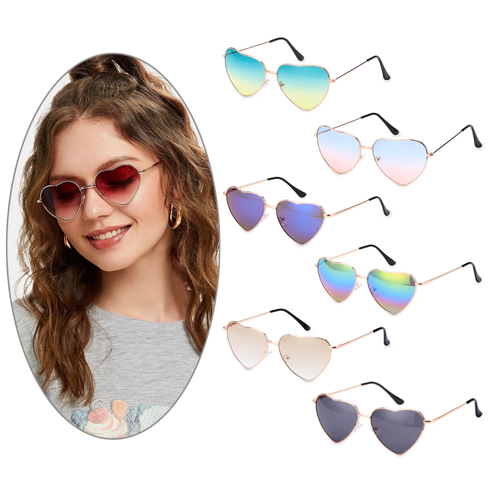 Надежный материал: Винтажные Солнцезащитные очки в форме сердца изготовлены из металла и пластика, яркий цвет и светильник с текстурой, прочные и удобные в носке, не доставляют вам большого веса, легко хранить и носить с собой, подходит для повседневной и длительной носки.