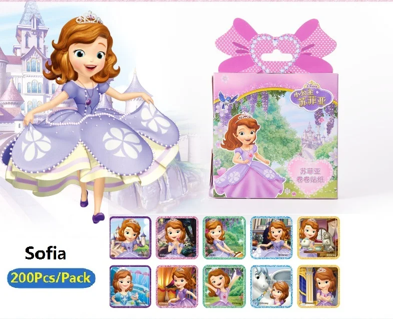 200 листов в коробке, наклейки с героями мультфильмов Диснея, Холодное сердце, Принцесса София, машинки, пони, Детские наградные наклейки, игрушки для мальчиков и девочек