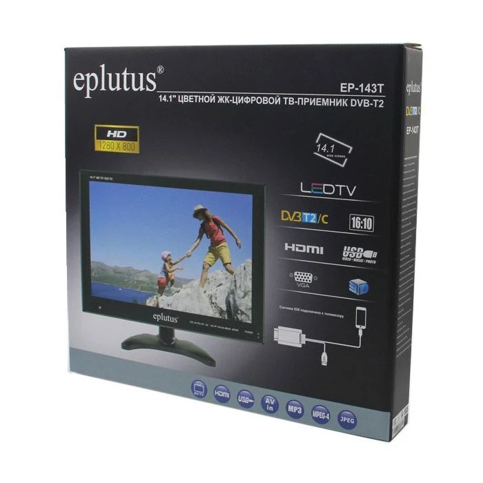 Комплектация | Портативный телевизор Eplutus EP-143T 14.1" DVB-T2 с встроенным аккумулятором |