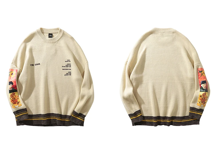 Отзывы о Мужской свитер в стиле пуловер хип-хоп уличная одежда вязаный с вышивкой Ван Гога