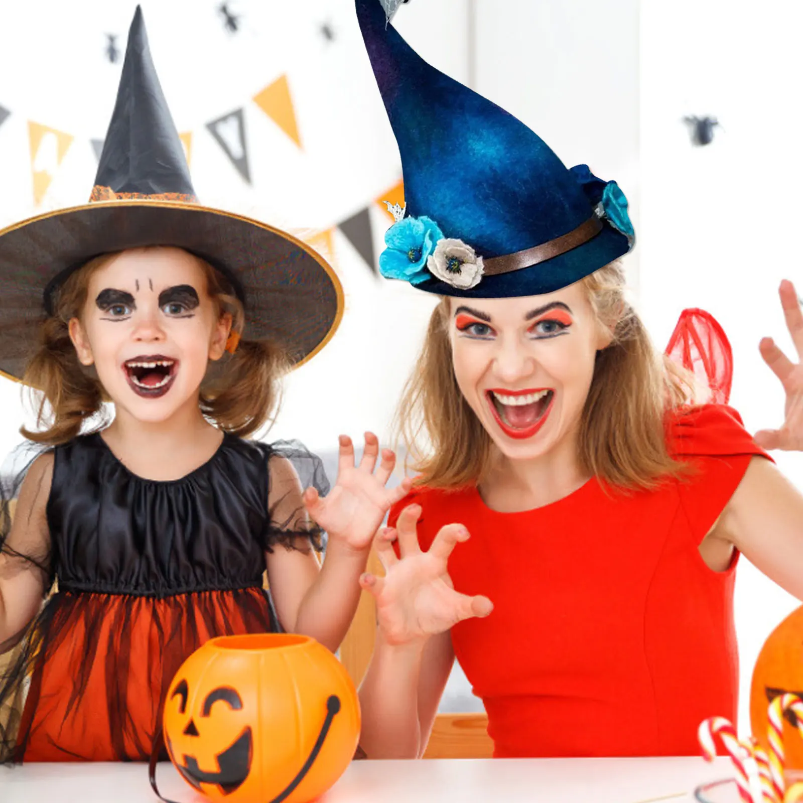 Вечерние фетровые шляпы ведьмы на Хэллоуин, регулируемые вечерние шляпы ведьмы, вечерние костюмы для косплея, складная шляпа ведьмы ручной работы с цветами, для женщин, маскарадные аксессуары к костюму для Косплей