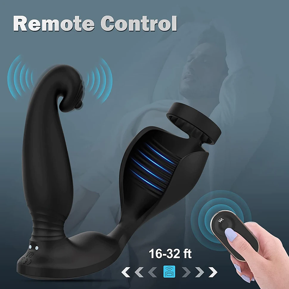 Удобный пульт дистанционного управления-Пульт дистанционного управления без рук длиной 32 фута делает массажер простаты более простым в использовании. Это добавляет обмен силы к вашей игре с партнером или приглашает вашего партнера, чтобы подтолкнуть вас издалека.