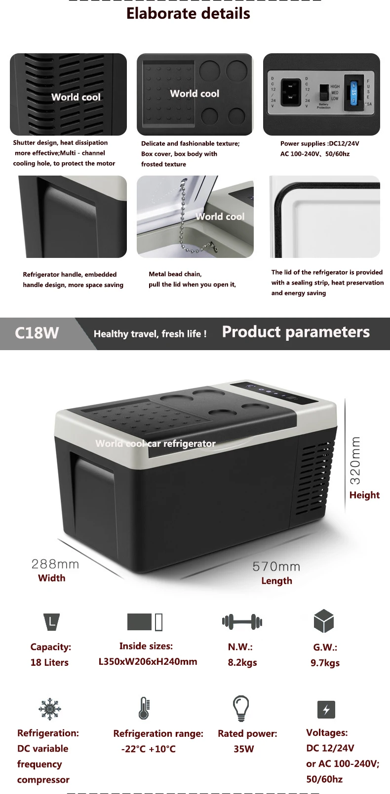 C18W общий пластиковый shel 18 литров автомобильный компрессор холодильник