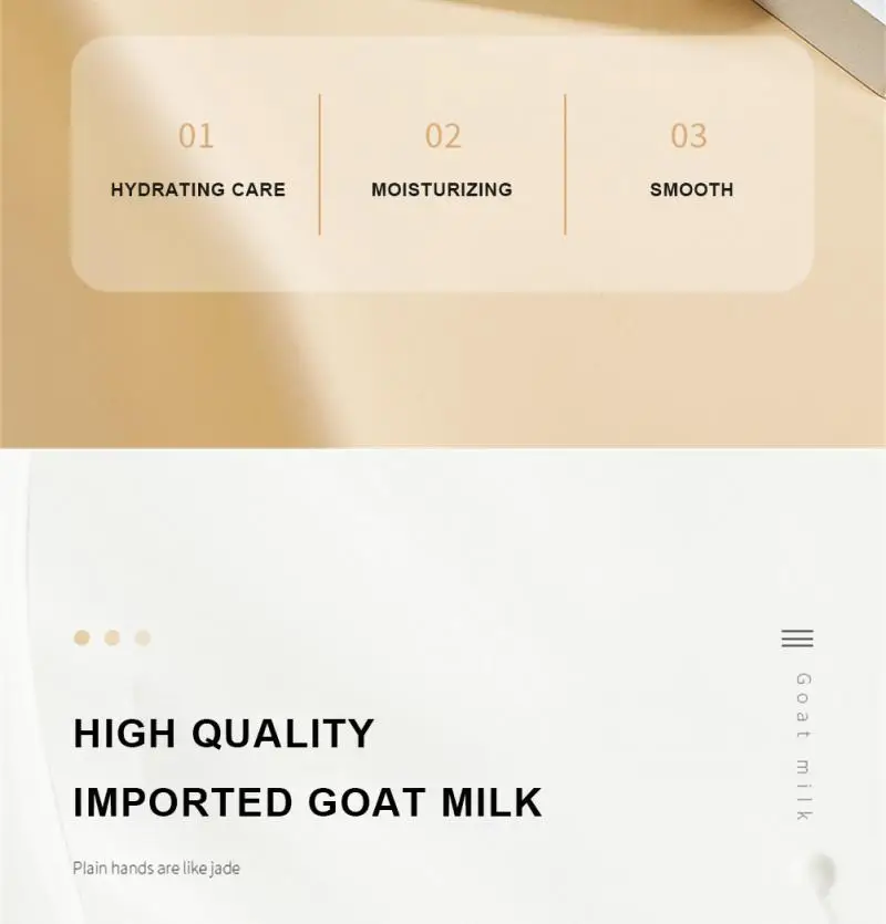 Выберите высококачественные ингредиенты из козьего молока для увлажнения кожи, увлажнения и ухода, улучшения тонких линий и сухости рук, Сделайте вашу кожу похожей на жир и ваши руки как нефрит.