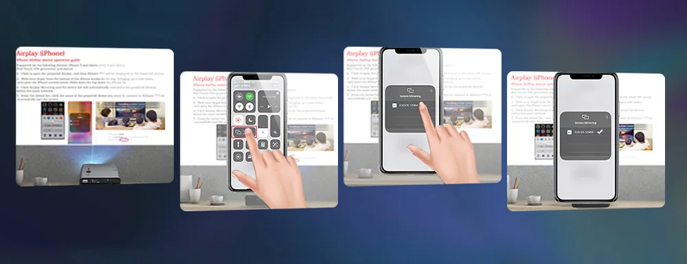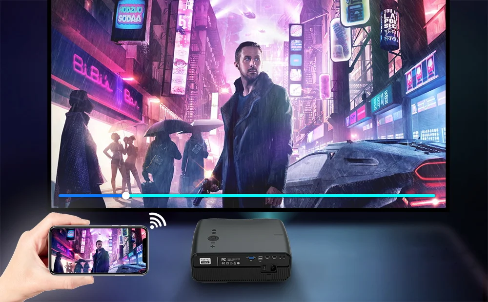 Проектор поддерживает беспроводное соединение, просто делая проектор и телефон подключен к тому же wifi. Это информация о том, как подключить беспроводной.
